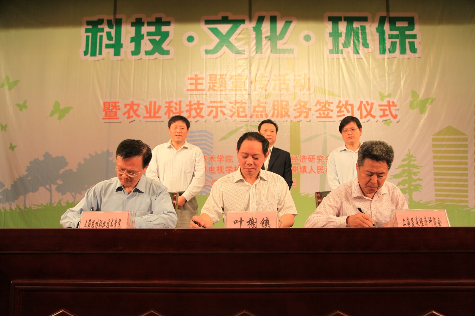 5月25日上午,学院、上海蔬菜经济研究会与松江区叶榭镇农业科技示范点服务框架协议三方签约仪式在叶榭影剧院隆重举行。叶榭镇相关领导与数百村民以及上海农林职业技术学院、上海市农业广播电视学校党政领导、上海蔬菜经济研究会、上海市农业技术推广中心、上海市农业科学院等相关人员共同见证了这一重要时刻。