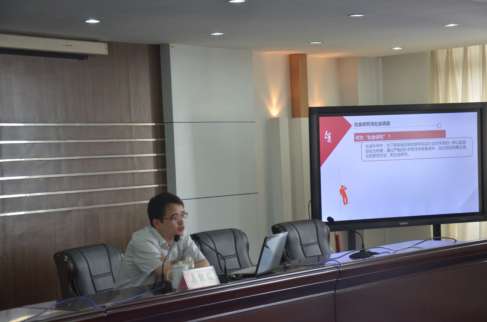 吴凯铭老师结合自身工作实践和经验,用生动的语言和典型的事例,围绕什么是社会研究和社会调查、为什么开展团学工作调查研究、调查研究的常用方法、如何整理调研资料、如何撰写调研报告等方面进行了专业性的辅导,使广大团学干部对调查研究的概念以及调查研究工作的重要性有了进一步的认识。特别是谈到要做好调查研究,必须要做好调研前的准备,要运用各种不同方法来开展,重视交流沟通,理清思路,找准方向。