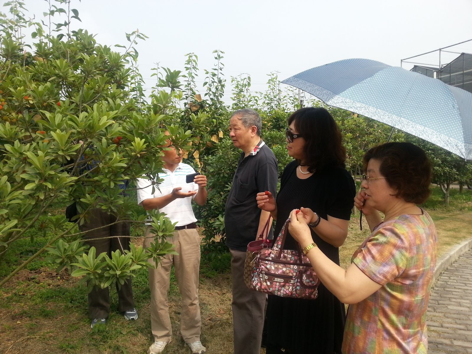 在轻松休闲的浏览过程中,老师们看着一片片即将成熟的果园,驻足在长势喜人的田间地头。摸摸叶片,闻闻花香,亲身感受着基地的一草一木,十年的建设和成果让老教师们感叹不已。老师们纷纷表示,这次的活动很有意义,看到学院的发展他们发自内心的高兴和满足。