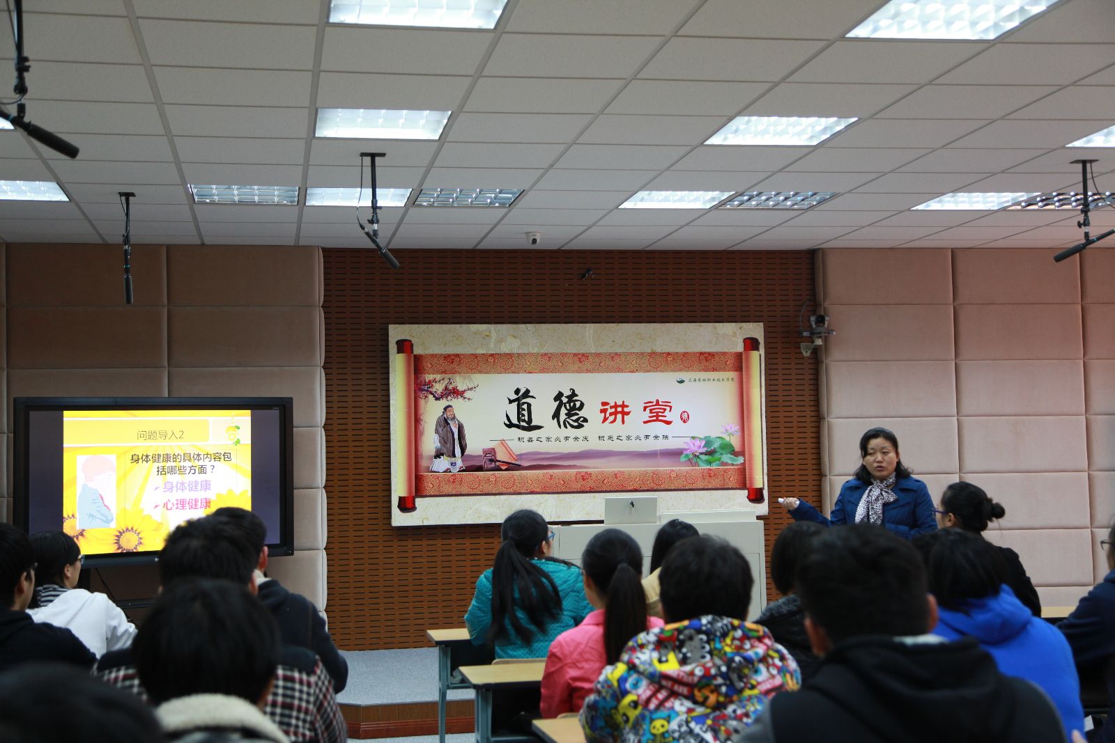 通过心理学经典图片的分析讲解,结合我院学生志愿服务、军训、运动会等活动内容,曹老师引导同学们树立正确的世界观、人生观和价值观,掌握应对心理问题的科学方法,合理调控情绪,积极参加集体活动,加强体育锻炼。在与人相处过程中坚持平等、诚信、宽容、互助等原则。正确评价自我,不自卑、不自负、悦纳自己,做一个身心健康的人;积极、乐观、向上,做一个快乐的人;与人和睦相处,做一个受人欢迎的人。