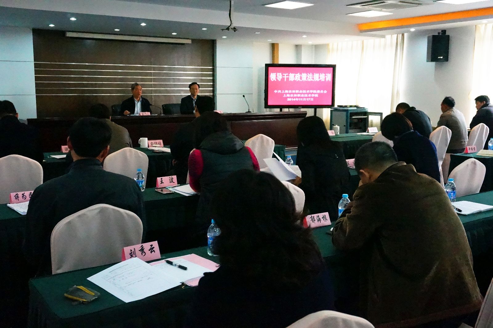 以十八届四中全会精神为指引,为贯彻依法治校精神,确保各部门领导干部对学院重要规章制度全面了解并得以贯彻落实,学院于11月17日下午在综合教学楼1001会议室举办了领导干部政策法规专题培训。会议由党委书记吴乃山主持,党政班子出席,全体中层干部参加。