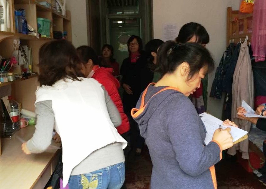 此次活动组织全体宿管员分男、女两组,对所有男生楼和女生楼进行抽查,核查抽查宿舍的打分是否符合检查标准,并让每位宿管员对所抽查宿舍卫生打分,随后现场讲解其打分的合理性,找出其打分偏高或偏低的原因,统一标准以尽量减少主观性因素对宿舍卫生打分成绩的影响。宿管组组织宿管员对现行的《宿舍卫生违纪情况汇总表》现场讨论,并根据实际情况更新打分表的内容细则和相应分值,进一步提升宿管员在宿舍检查时的标准化、合理化水平。