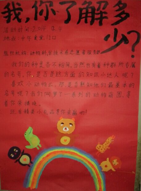 12月4日中午,动科系志愿者服务部在食堂门前举行了一场宠物知识有奖竞猜活动。