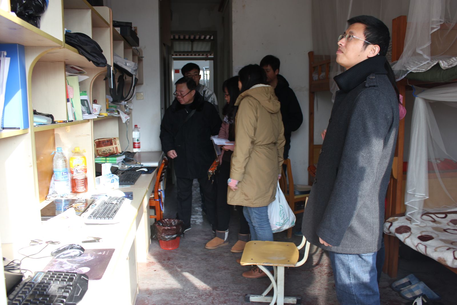 12月9日上午,在学生处的组织和安排下,各系学生工作负责人、辅导员、宿管组的老师和宿舍楼层长学生代表深入学生宿舍,对全院7栋宿舍楼展开安全大检查。