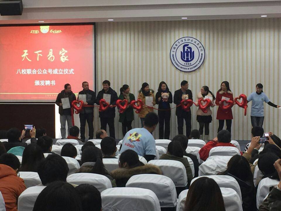 易班八校联盟由八个高校组成,成员包括上海电子信息职业技术学院、上海师范大学、上海华东理工大学、上海应用技术学院、上海商学院、上海旅游高等专科学校、上海工会管理职业学院、上海农林职业技术学院。联盟意在整合各个学院优势资源,努力营造积极、丰富的易班氛围和内容,全力建设新易班。活动设立‘天下“易”家’八校联和公众账号,张雷被聘为“八校联盟”指导老师。