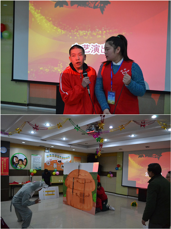 仪式结束后,阳光之家学员们为志愿者们带来了他们精心排练的节目《三只小猪》,志愿者与学员合唱《春暖花开》。在《春暖花开》动情合唱中志愿者、学员们都热泪盈眶、深深地打动了在场所有人。