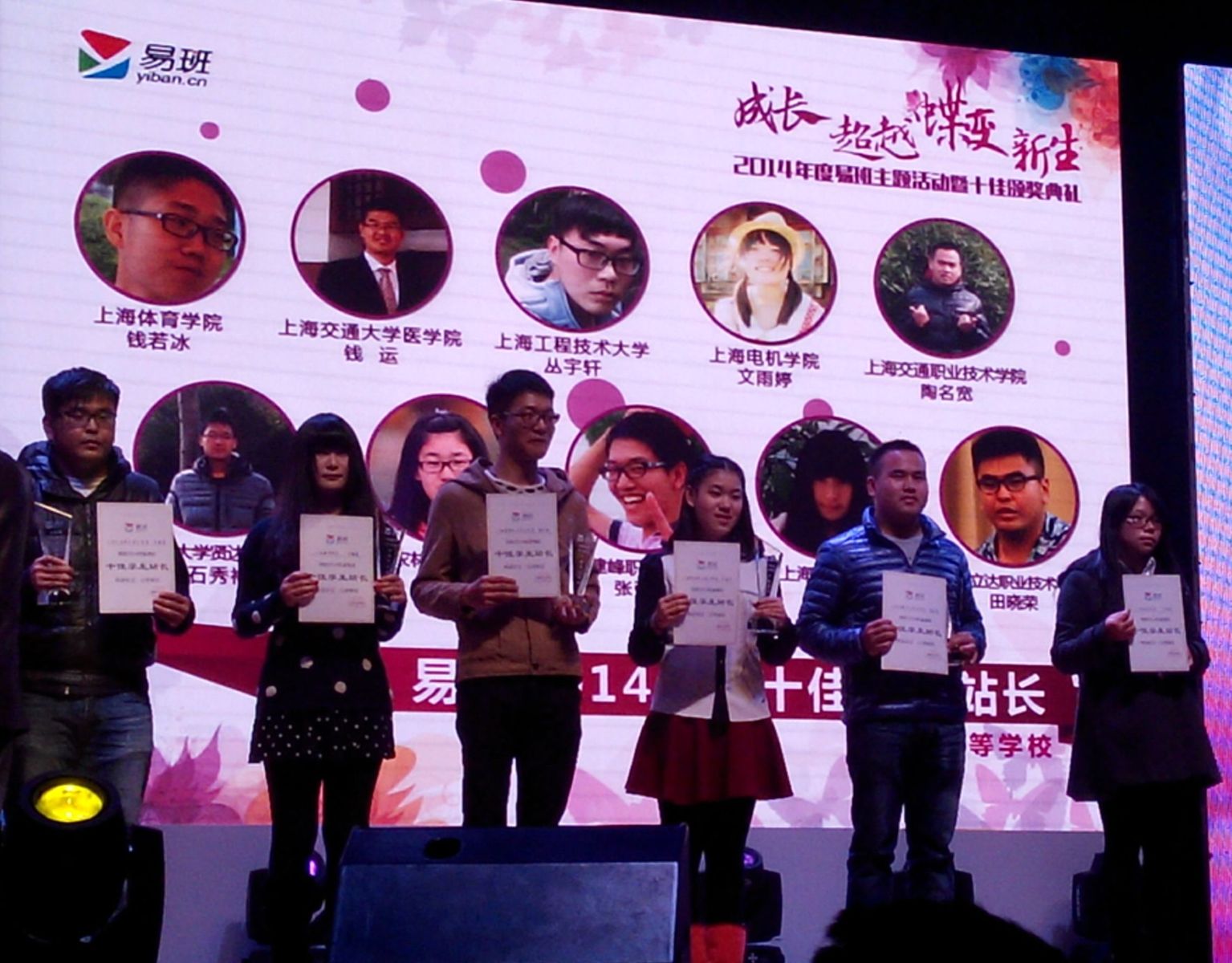 从昨晚举行的2014年度“成长•超越•蝶变•新生”易班主题活动暨十佳颁奖典礼上获悉,车逸兰同学获易班2014年度“十佳学生站长”。我院在易班工作中首次荣获的殊荣,也代表了上海市易班发展中心对我院易班工作的肯定。