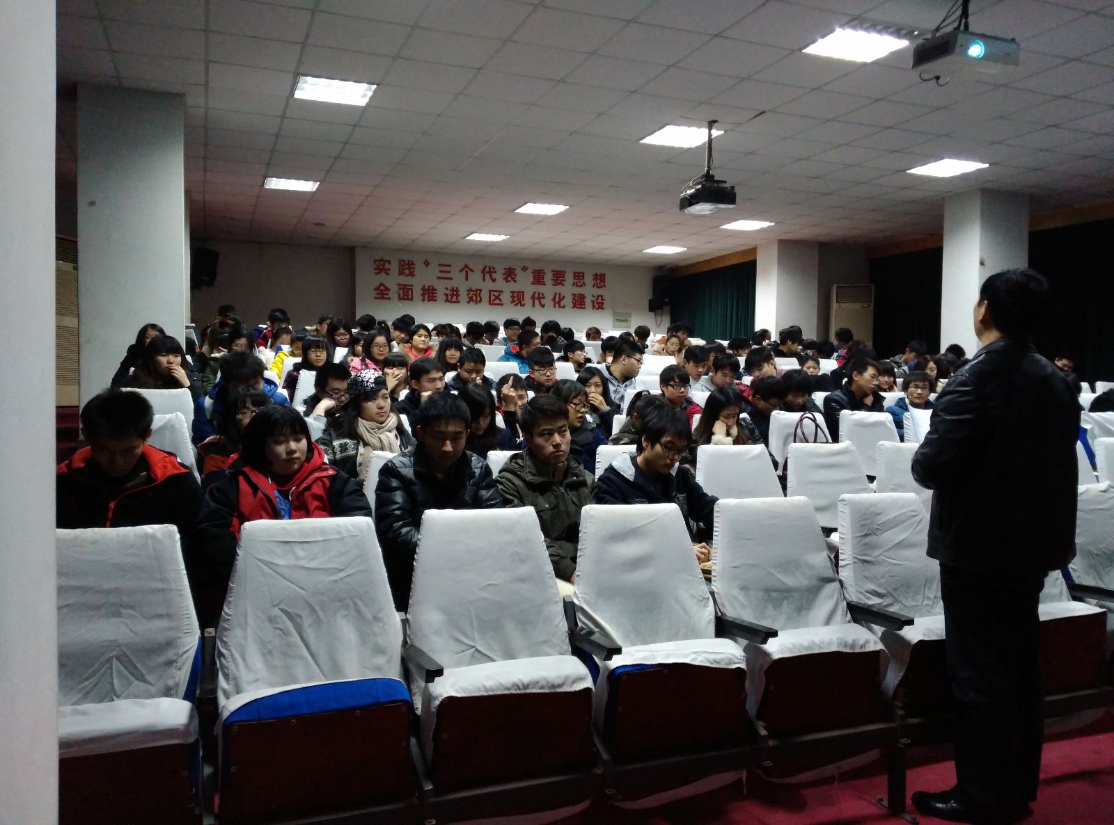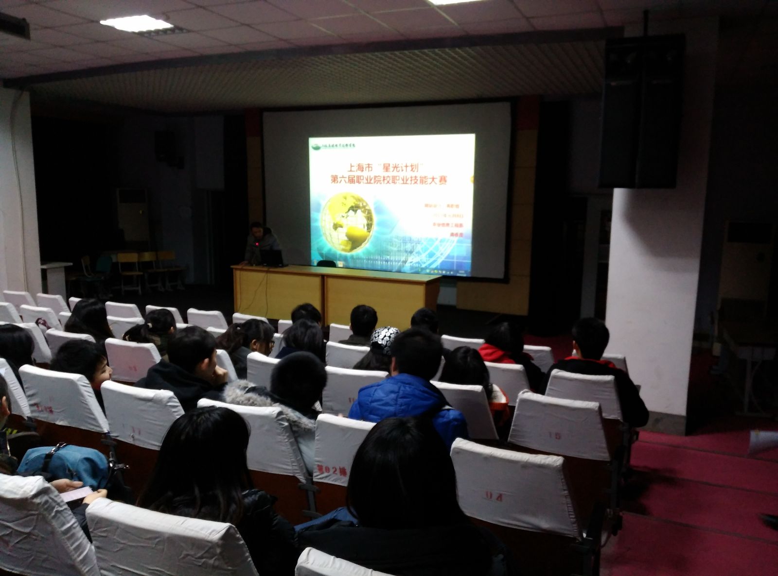 2015年1月8日农业信息工程系在农信楼报告厅展开上海市“星光计划”动员会。本次动员会由系主任孙修东主持,会上谭春茂、赵文旻两位老师对大赛进行了详细的介绍和答疑,农信系13级近一百位同学参加。