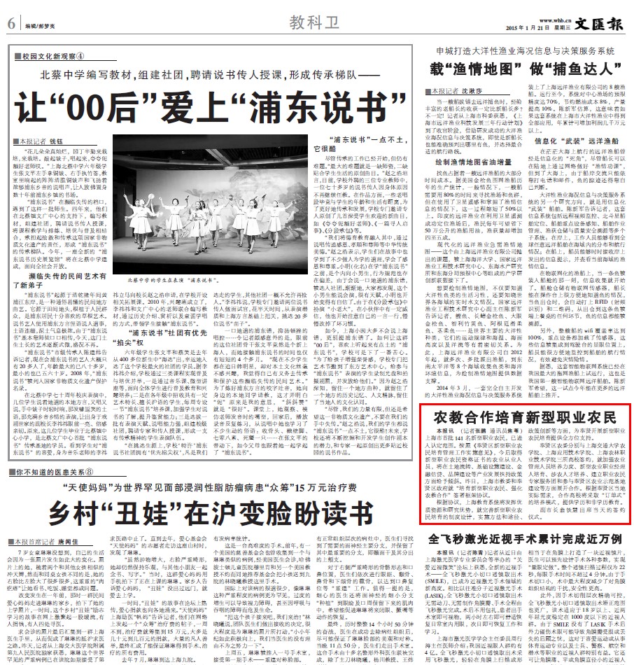 1月21日,文汇报科教卫新闻报道农教合作培育新型职业农民,并提及学院与奉贤区农委签订农业教育、科技合作框架协议。具体报道如下: