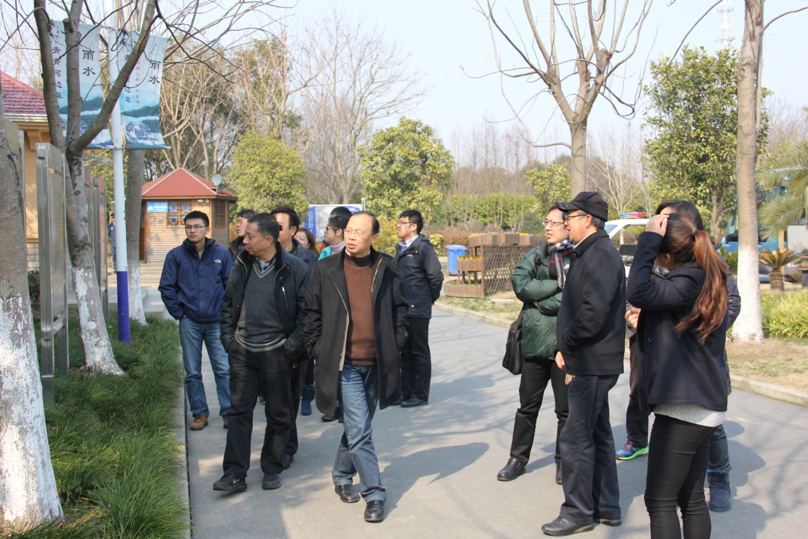 束金龙一行10人在植树前参观了新建实训大楼、热带植物园、宠物美容和诊疗室等。院办、党办、教务处和实训基地的相关人员参加了植树活动。