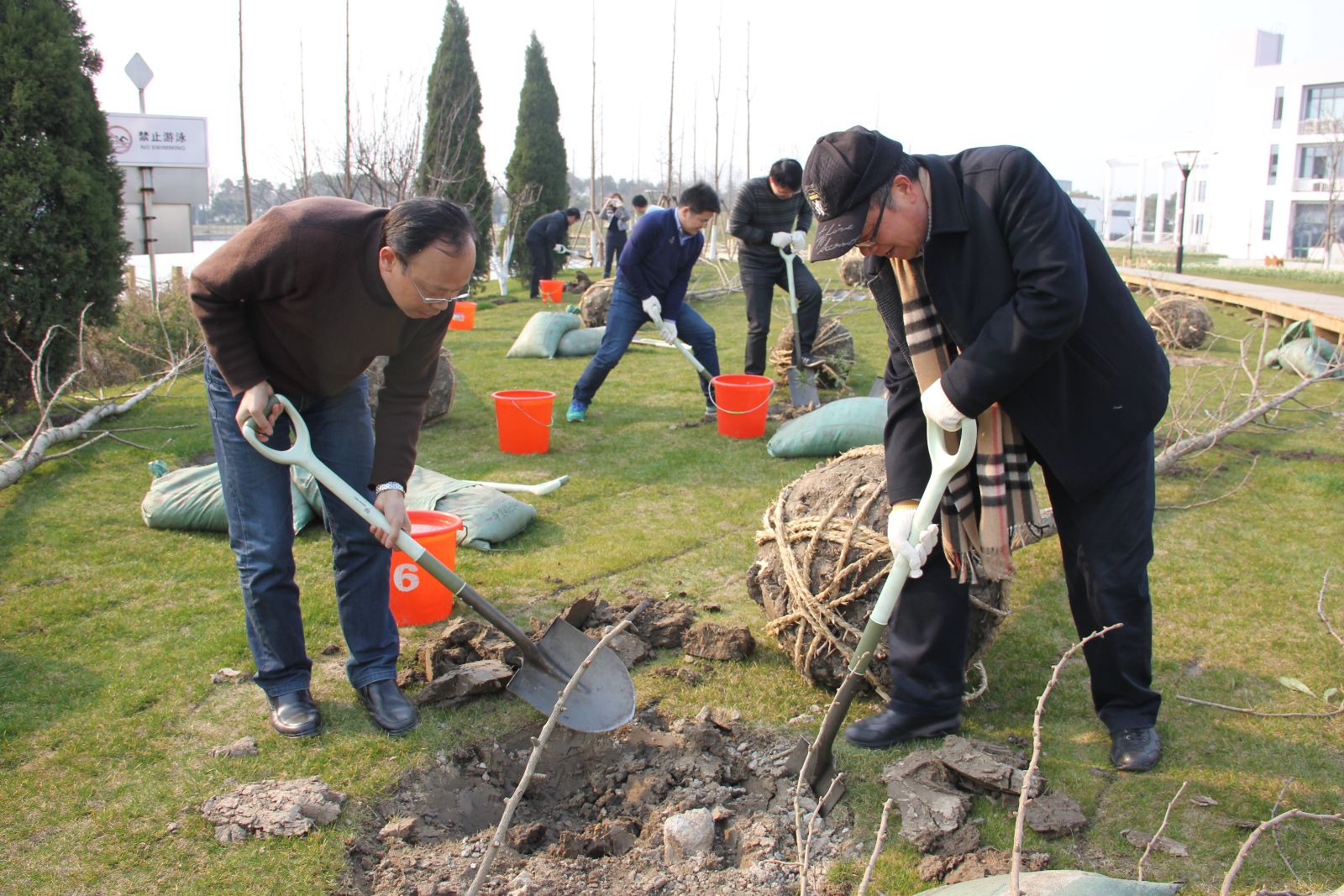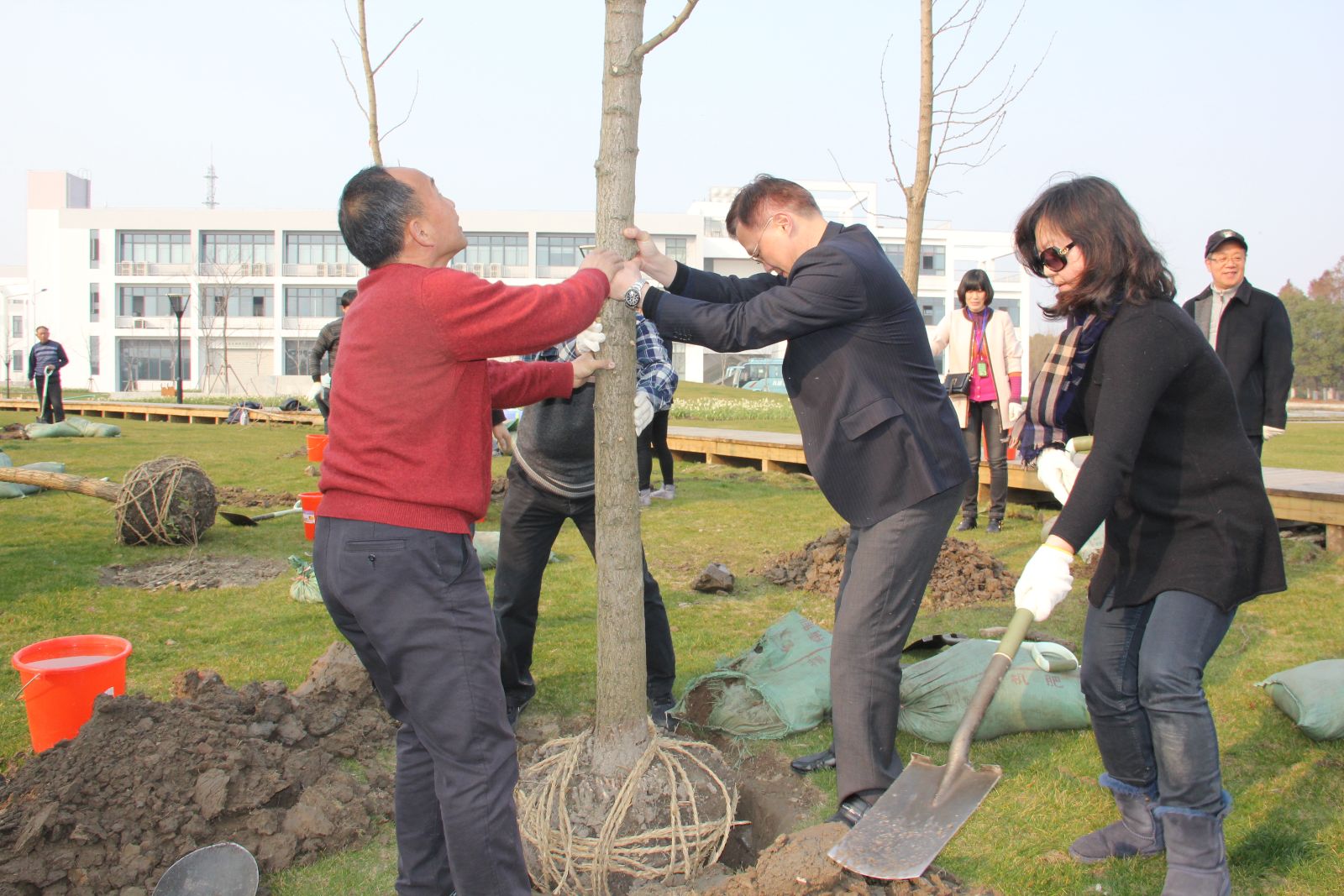 3月12日下午,市教委高教处副处长束金龙一行10人,到我院五厍实训基地开展义务植树活动。党委书记吴乃山、院长魏华、副院长谢锦平和副校长王军亮等党政班子成员参加了植树活动。