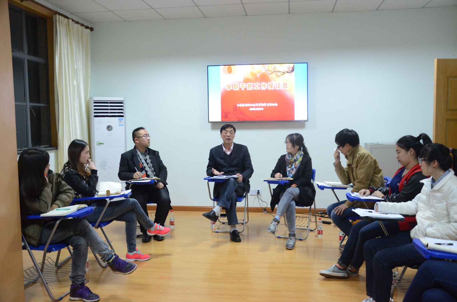 3月24日,学联干部座谈会在学生事务楼团体辅导室举行,党委副书记、副院长俞锦禄同志出席,团委书记许昊、副书记胡慧春、各系学联主席和院学联各直属部门部长参加座谈。