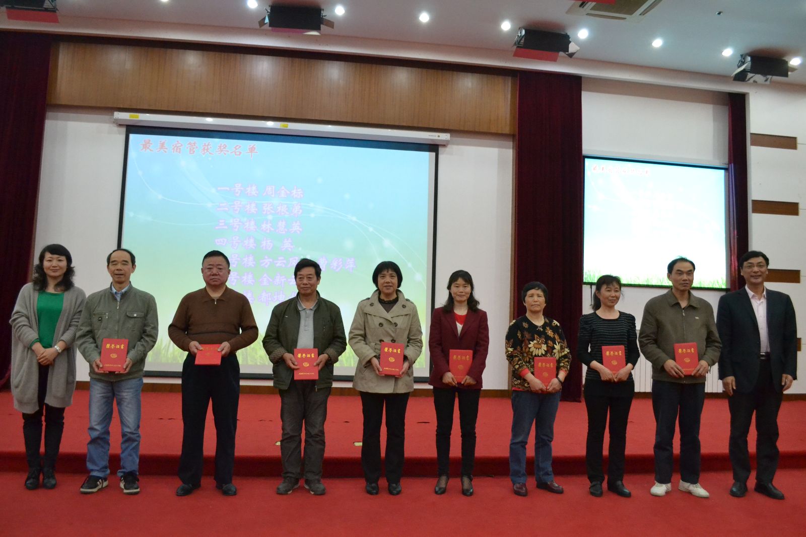 党委副书记、副院长俞锦禄宣布上海农林职业技术学院第一届寝室文化节闭幕!刘秀云、许昊分别宣布了获奖名单,周金标等八位宿管荣获最美宿管荣誉称号,一号楼110等16个寝室分别荣获寝室美化设计大赛、logo设计大赛、征文比赛等奖项,并进行了颁奖。