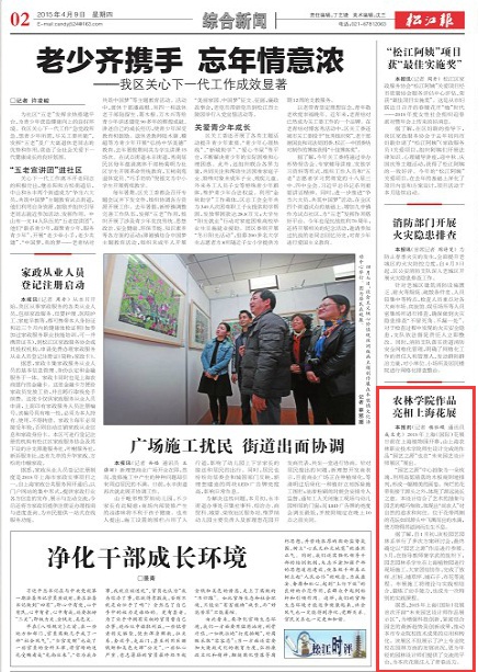 今天,松江报02版综合新闻报道了学院作品亮相上海花展。