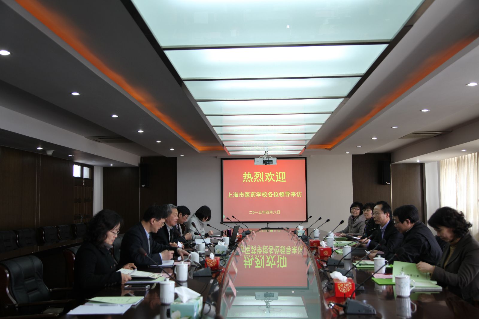 4月8日,上海市医药学校校长陆国民、党委书记徐学泉、副校长茅燕萍、常光萍和纪委书记、工会主席苏惠芳等党政班子一行五人来校交流访问。我院党委书记吴乃山、院长魏华、副书记俞锦禄出席交流会,相关部门负责人参与了交流互动。
