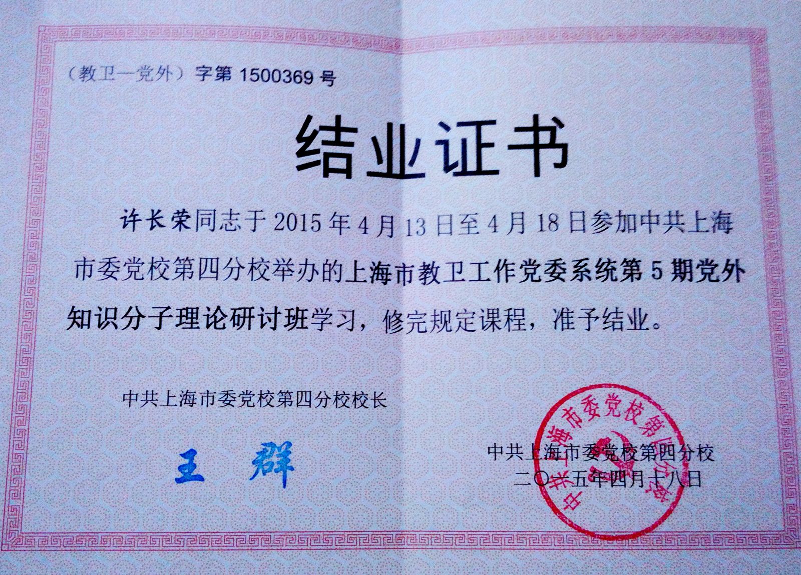 为进一步提高我院统战队伍的理论水平,丰富知识,开拓视野。4月13—18日,学院选派许长荣老师参加上海市教卫工作党委系统第5期党外知识分子理论研讨班。