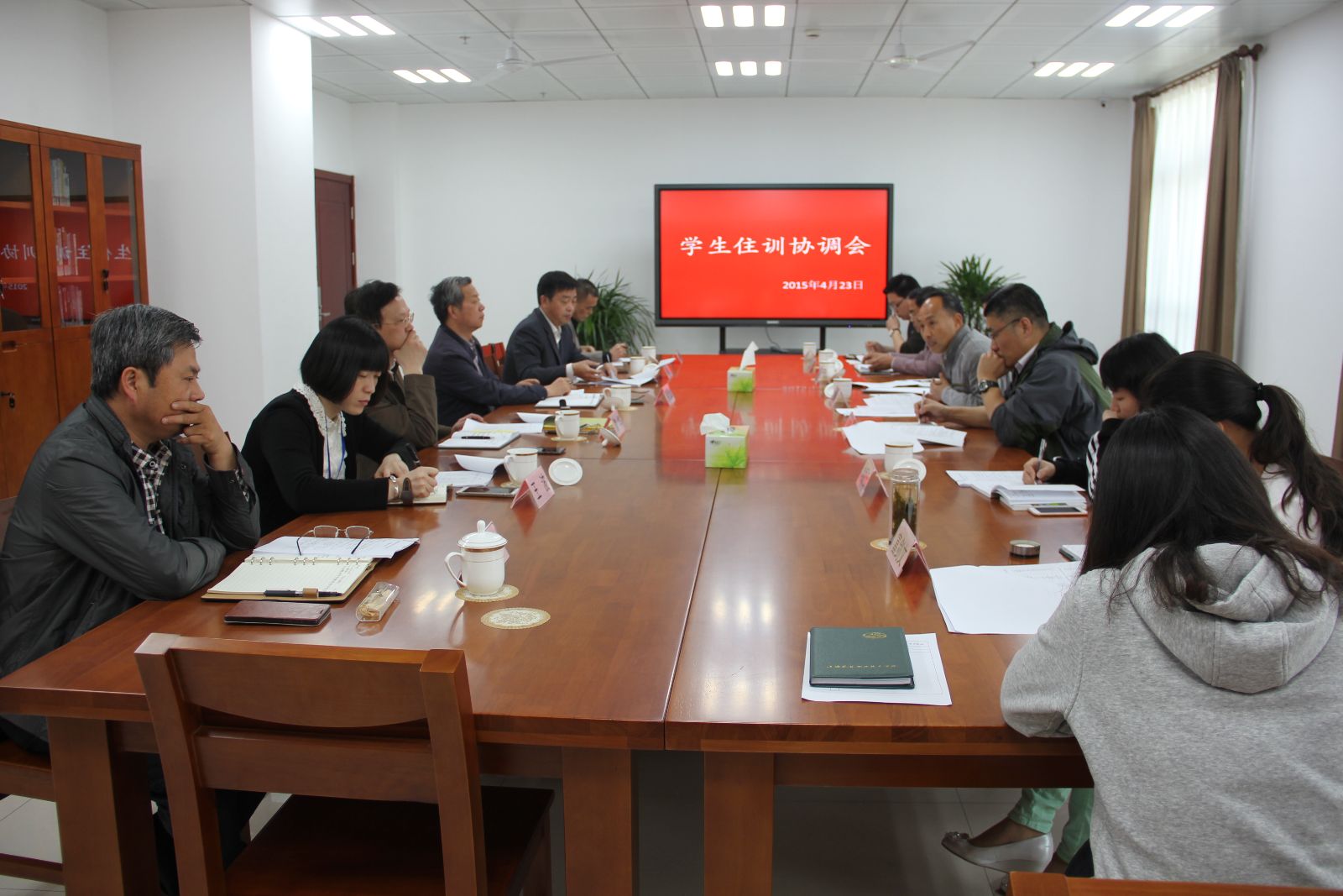 会上,将要派学生住训的园艺园林系与动科系提出学生住训后可能出现的问题。王军亮介绍了实训基地的情况,从学生管理、教学安排、后勤保障等几个方面作了汇报,提出学生在基地住训后实行半军事化的封闭式管理的想法。各职能部门就学生住训的相关职能发表了看法并提出了合理化建议。
