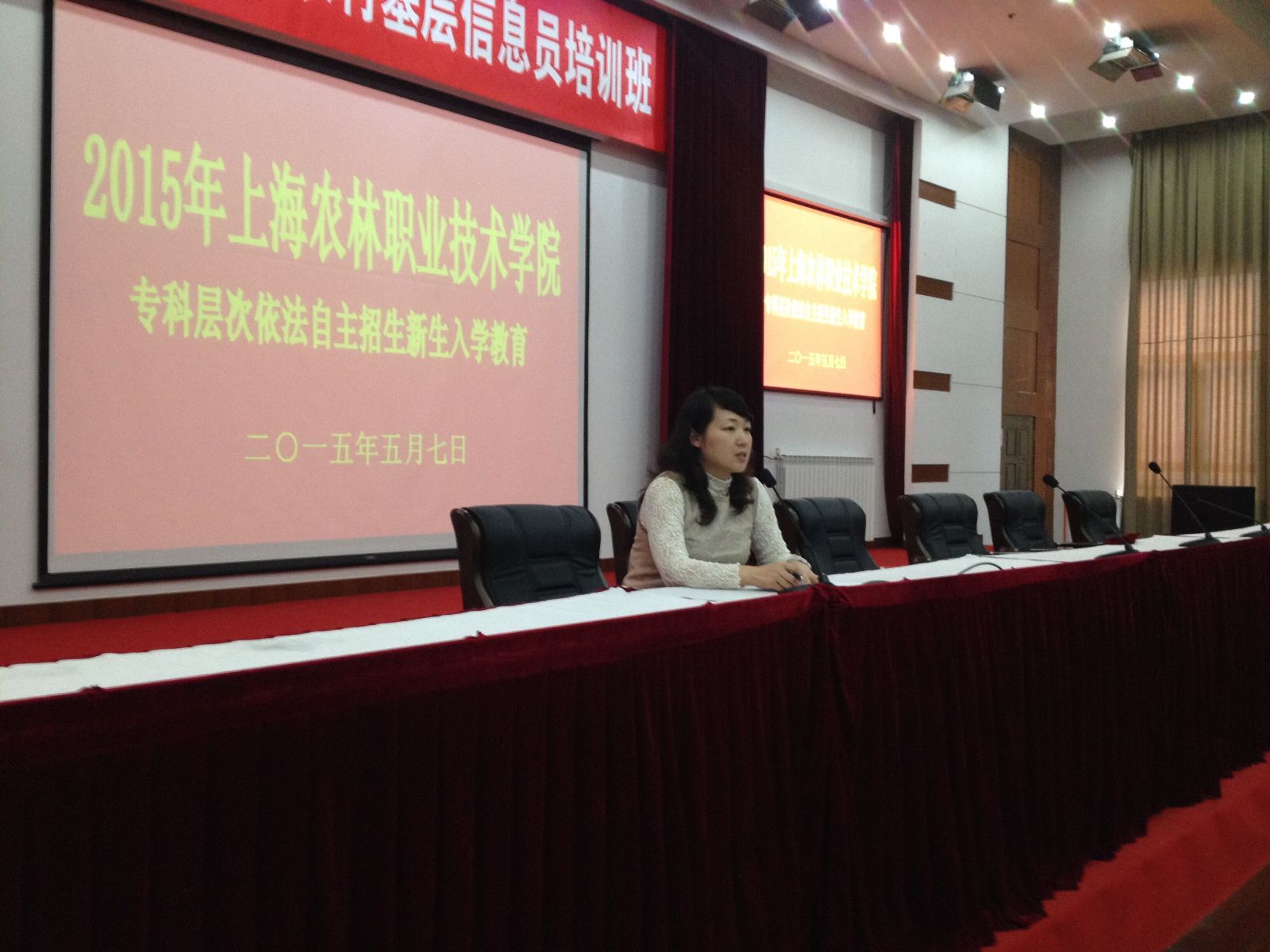 5月7日下午,在综合楼205报告厅,学院举行了2015年自主招生新生入学教育第一场。学生处处长刘秀云对新生进行入学教育。她热烈欢迎2015级新生的到来,表达了美好祝愿和殷切期盼,介绍了学院及各系部的基本情况。