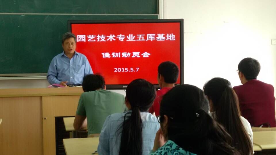 5月7日,园艺园林系召开园艺技术专业“基地班”和“源怡种苗班”学生五厍实训基地住训动员会。会议由系主任俞平高主持,系党支部书记高东菊、基地住训负责老师陈雨兰及相关任课老师,两个班级共45名学生参加动员会。