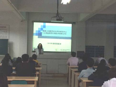 5月12日下午,国家上海新药安全评价研究中心在第一教学楼202室进行了“安评中心班”校园招生宣讲会,该研究中心人力资源部主管刘戴丽、现就职于该中心的08届毕业生阮斌、农生系系辅导员苌建菊及2013级50余名学生参加此次宣讲。