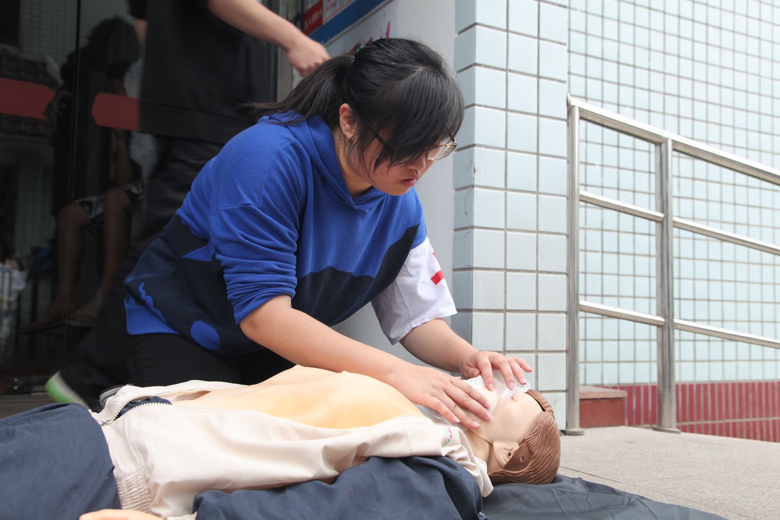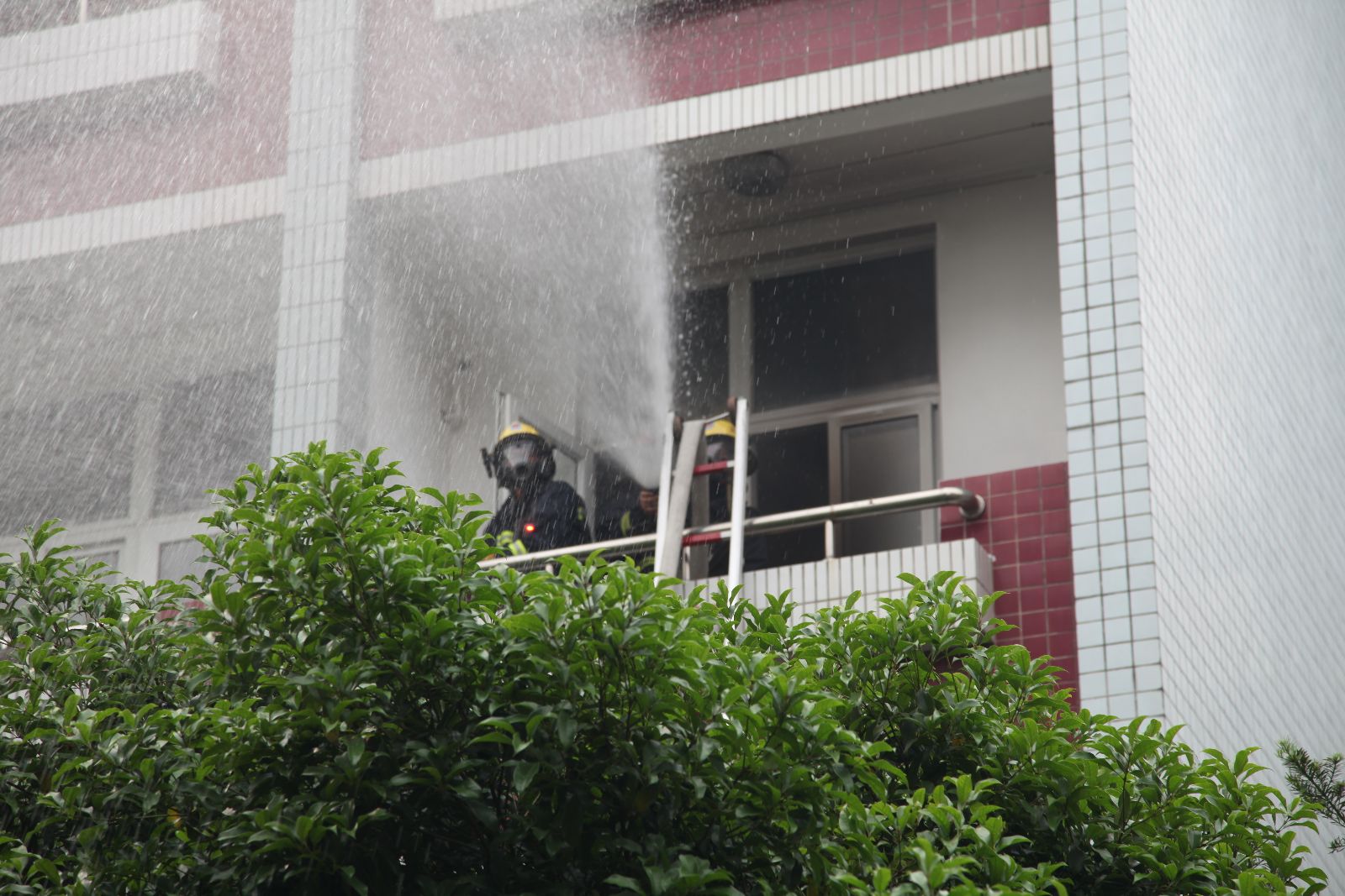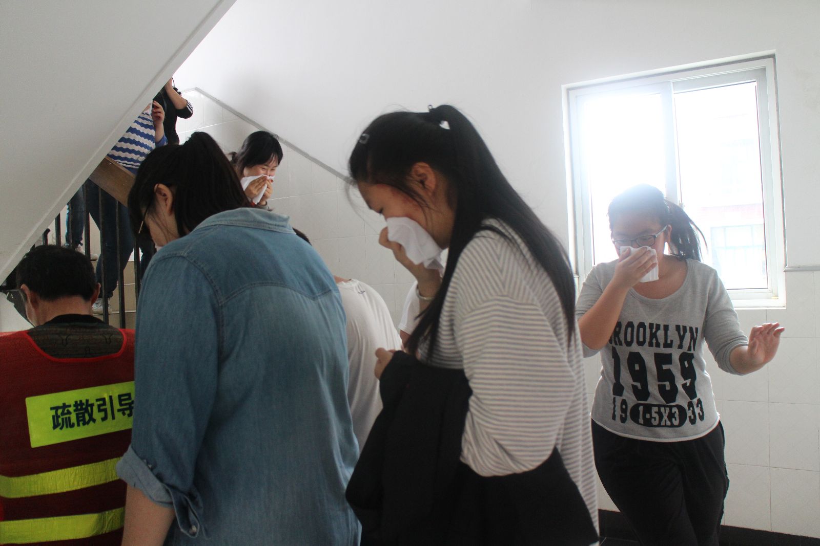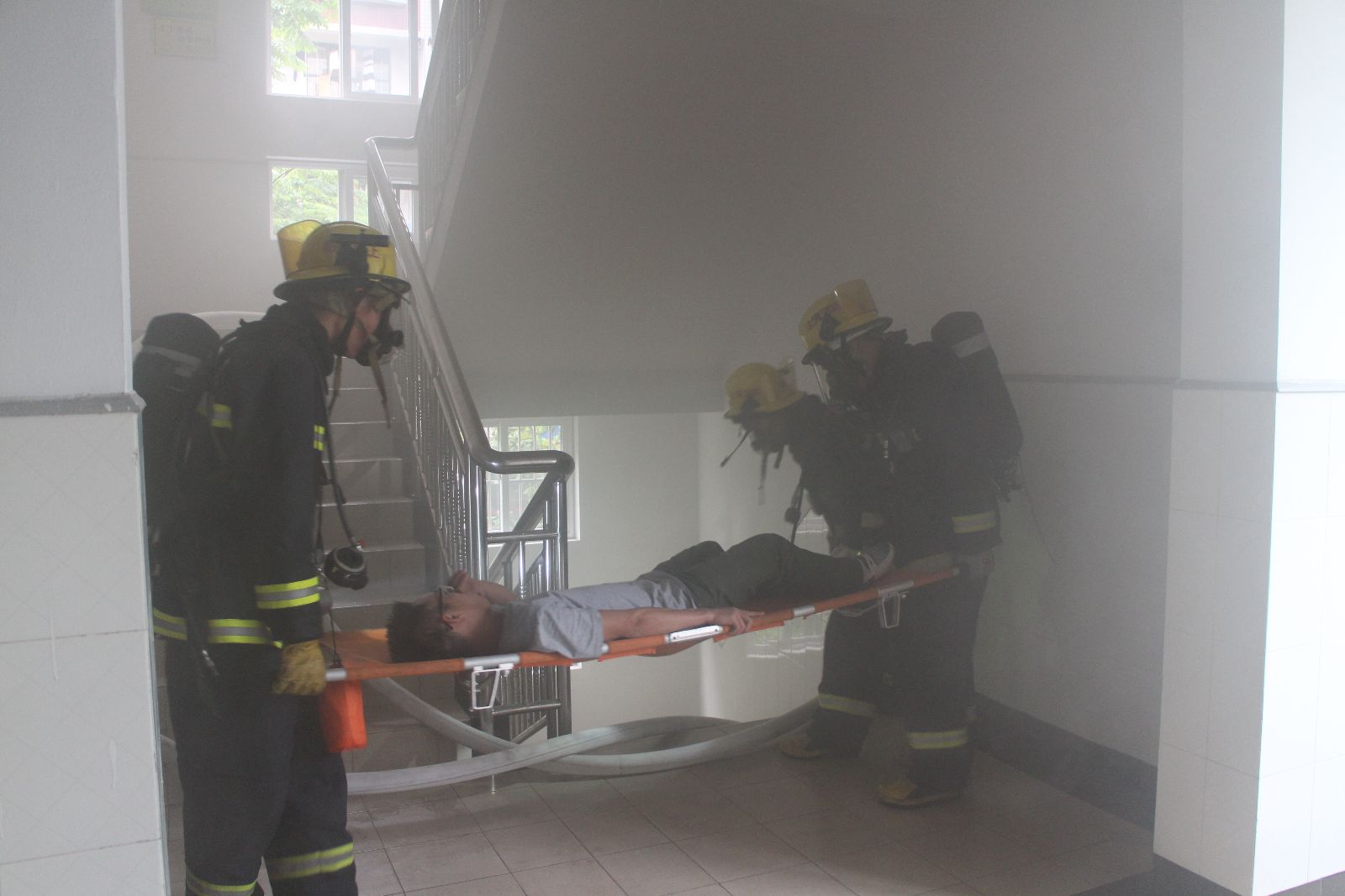 下午3点,仲肇森宣布消防疏散逃生演练开始。4号楼学生公寓301宿舍因吸烟引燃蚊帐引起火灾,学生公寓浓烟滚滚,烟雾顺风向上蔓延,参与演练的同学们在楼内挥手求救,场面惊心动魄,三楼消防官兵也在紧急疏散烟雾,迅速进入现场进行灭火救援,场外医务人员对伤员进行现场急救。楼内学生快速疏散,弯腰捂鼻,沿着逃生路线快速有序撤离到集合点,仅用时5分钟,楼内200余名人员全部疏散、搜救完毕。与此同时,医务室与院红会志愿者现场模拟开展了心肺复苏、创伤救护等急救现场表演。本次消防疏散逃生演练圆满结束。