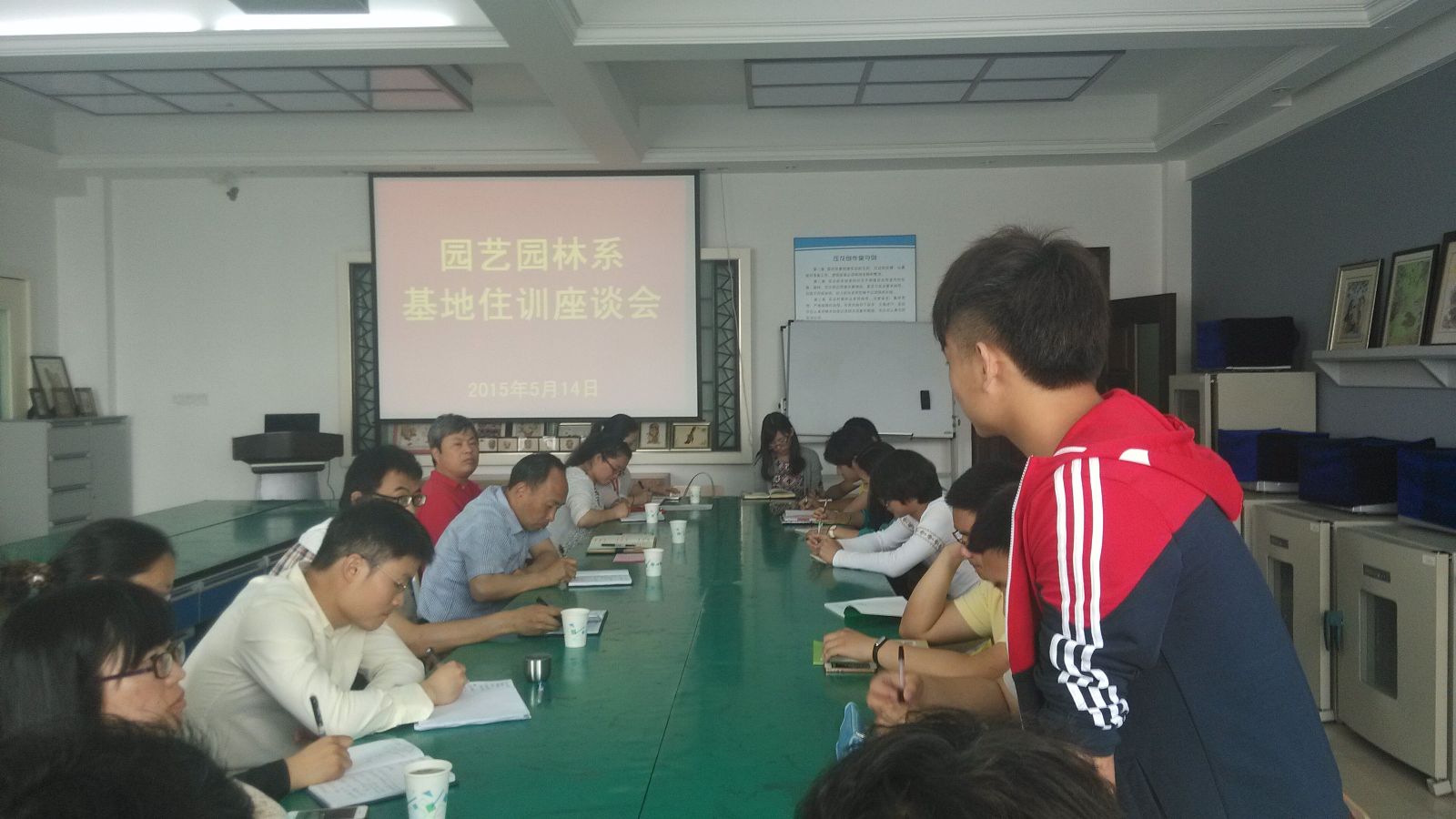 5月14日,园艺园林系召开“基地班”和“源怡种苗班”学生五厍实训基地住训座谈会,10位学生代表根据在基地学习、生活和实践的感受提出建议。基地主任王军亮、支部书记富剑文、教务处副处长薛俊梅、系党支部书记高东菊及相关任课教师、辅导员参加。会议由系主任俞平高主持。