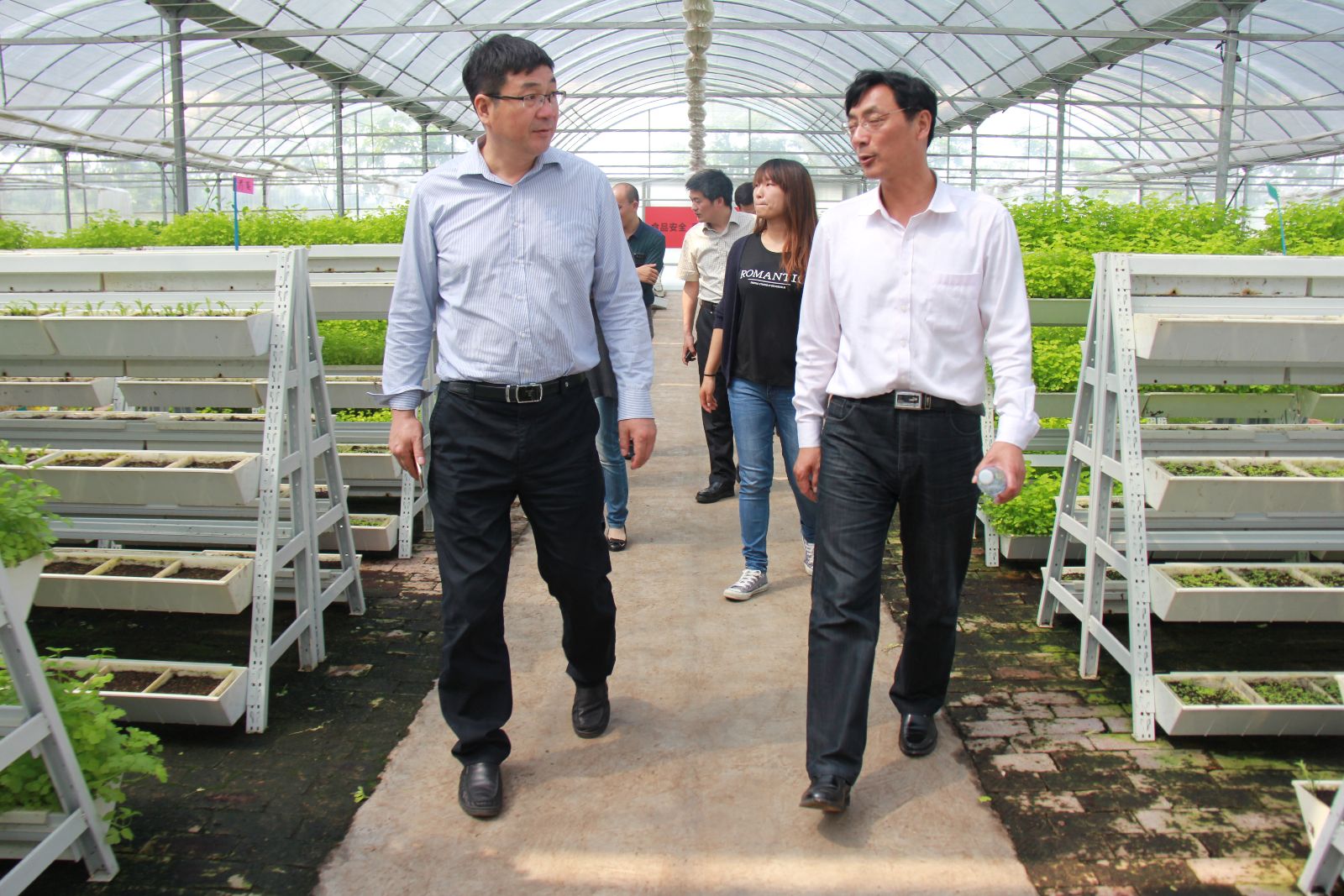 座谈会后,王润贤一行参观了农业经济管理系的实训室、学院五厍实训基地,并前往考察学习了“全国十佳农民”李春峰的家庭农场。