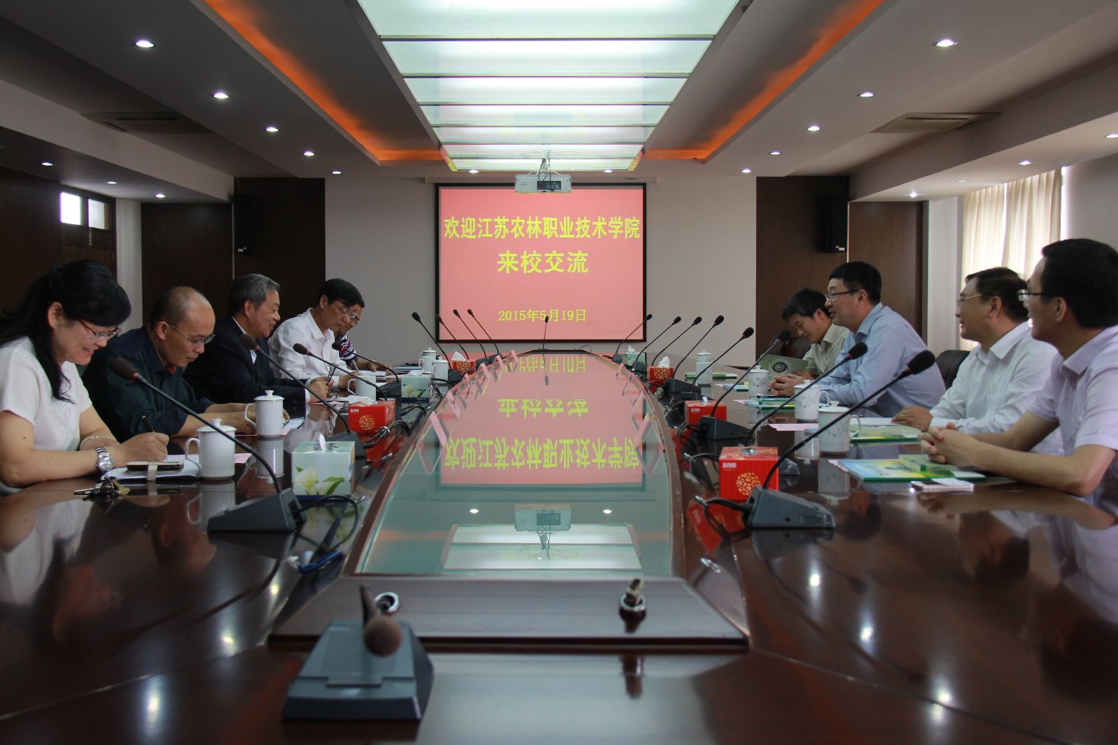5月19日,江苏农林职业技术学院党委副书记王润贤一行4人来校交流座谈。学院党委书记吴乃山、副书记俞锦禄出席座谈会,相关部门负责人和农业经济管理系教师参加了交流座谈。