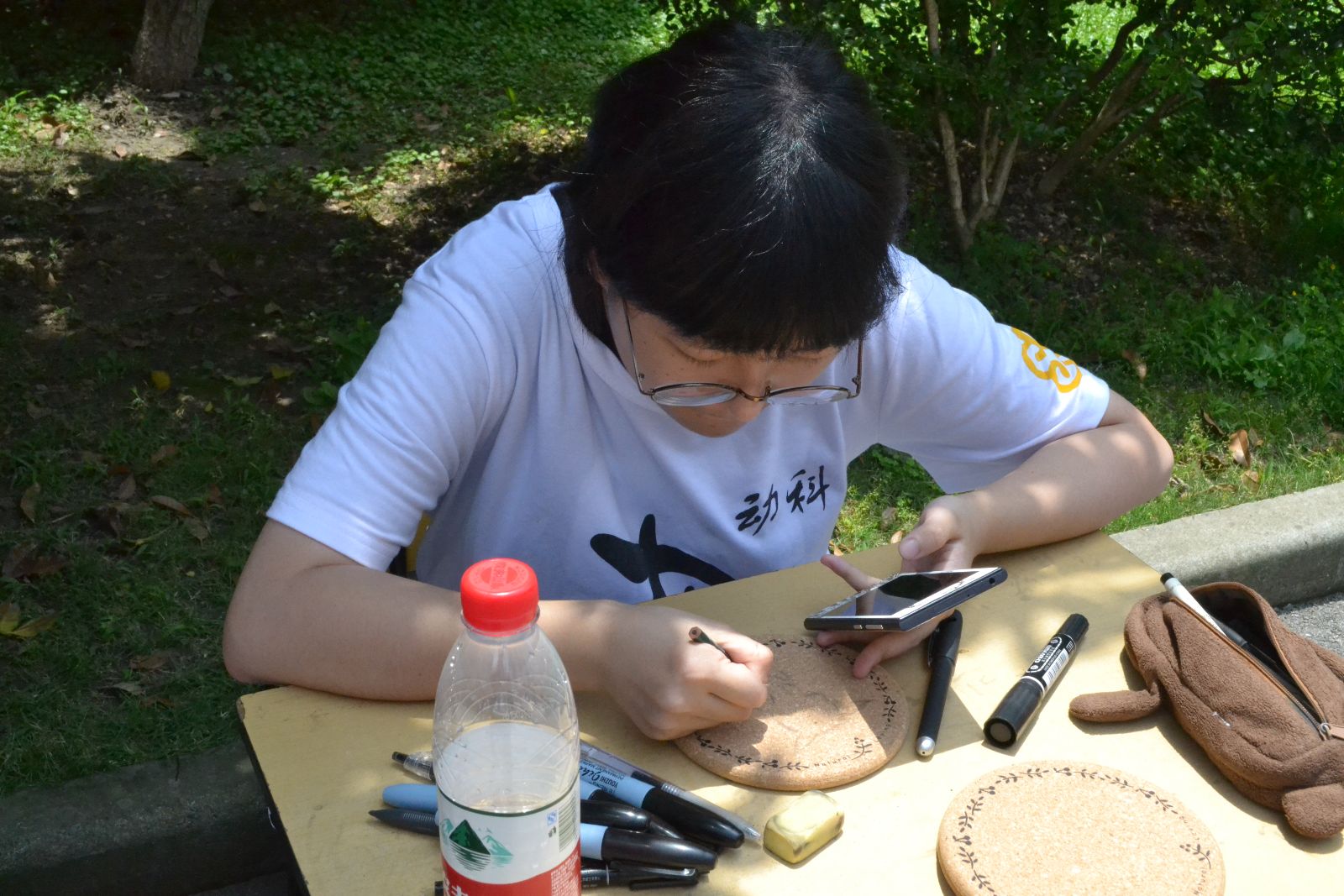 两天的义卖中,动科系同学卖力推销,吸引过往师生纷纷驻足,围观淘宝。1元钱一支笔、5元的鼠标垫、15元的毛绒玩具……卖品虽普通,但广受同学欢迎,大家纷纷掏出钱包,为流浪猫贡献自己的爱心。最受欢迎的义卖品,当属私人定制的杯垫了,买家定制图案,同学手工绘制,加上同学创意的杯垫,格外热销。