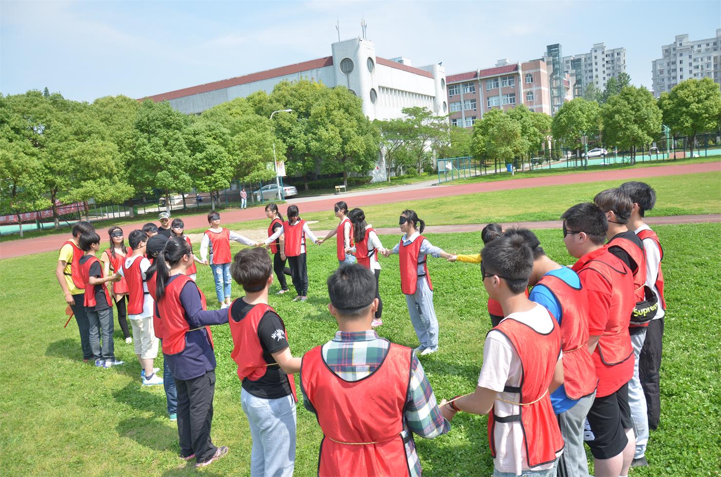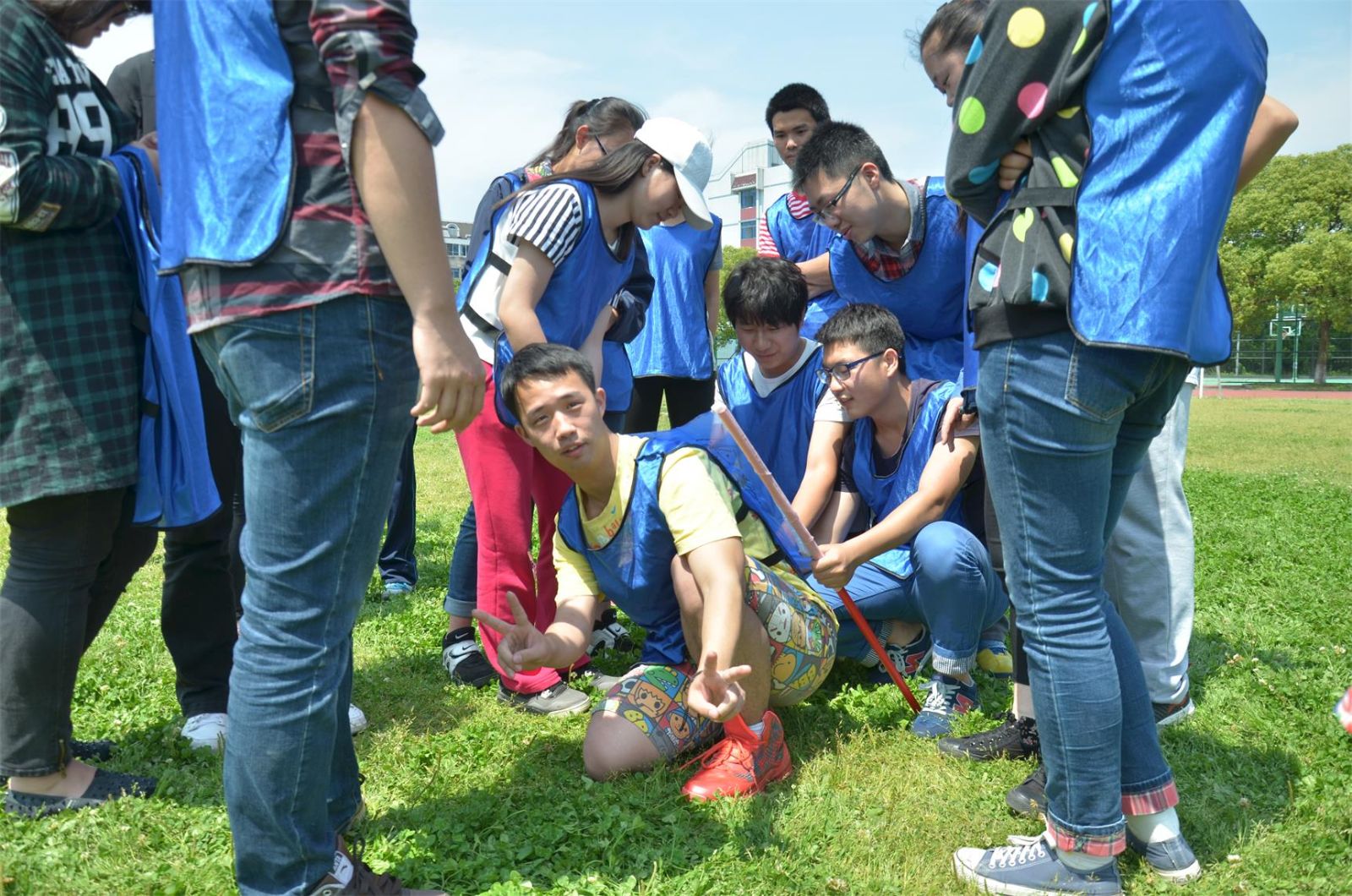 素质拓展主要是考察培养团学干部的团队协作能力、领导能力、沟通能力等。首先开始的是拓展训练热身,通过选队长、设计队徽、队呼、队歌和互动小游戏,增进同学之间的了解。紧接着通过“盲人方阵” “阻塞交通”以及“两人三足”等游戏,让同学们充分融入到整个团体之中。活动中处处体现出很强的团队合作意识,集体的智慧得到升华,激发了同学们的内在潜力,使他们深刻意识到要敢于承担责任,善于组织团队,密切配合集体。