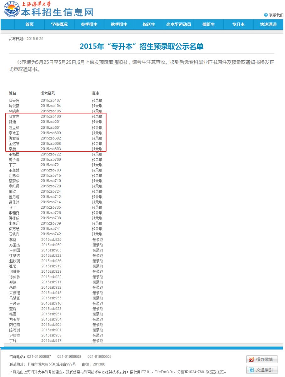 近日,从上海海洋大学官网获悉,我院农生系和动科系2012级七名报考上海海洋大学专升本的同学,现已全部被预录取,其中农生系3人,动科系4人。上海海洋大学官网公示如下: