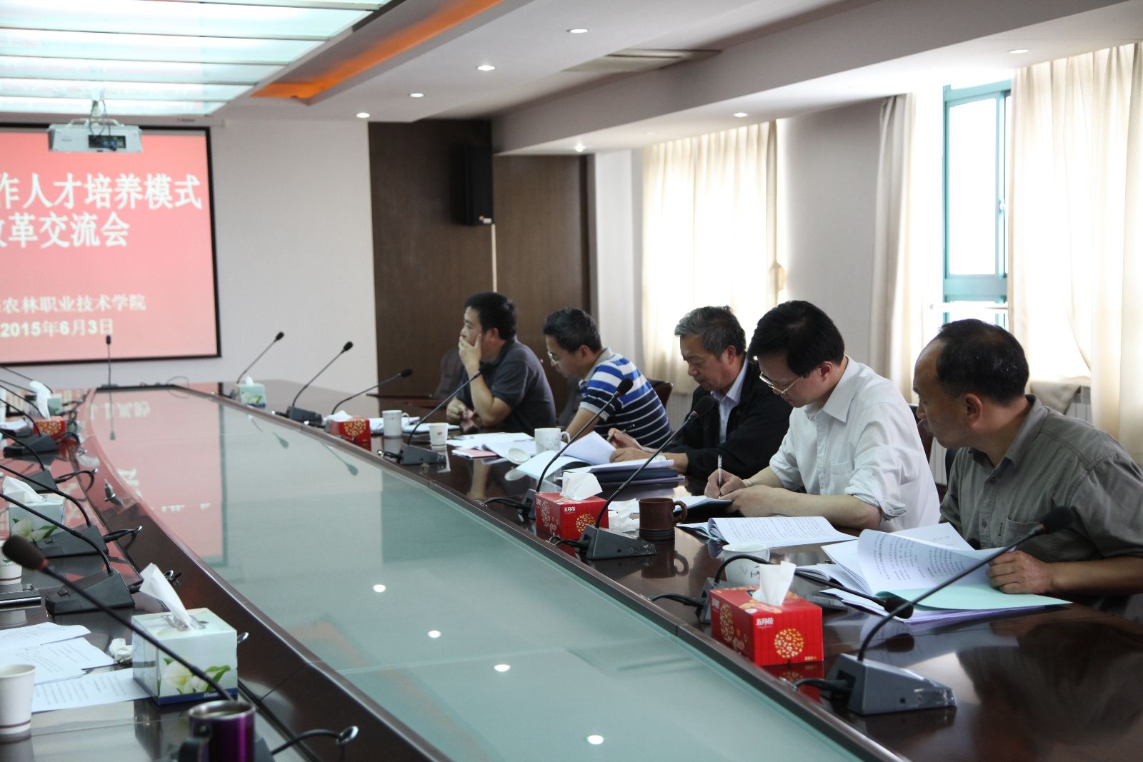 6月3日,在综合楼1101会议室,学院召开校企合作人才培养模式改革交流会,为了进一步深化人才培养模式改革,促进学校校企合作办学工作。党委书记吴乃山,院长魏华,副院长谢锦平,市农校副校长王军亮出席会议,院办、高教研究所、宣传处、学生处、教务处、校企合作办等负责人参加会议。分管领导王彤光主持了会议。