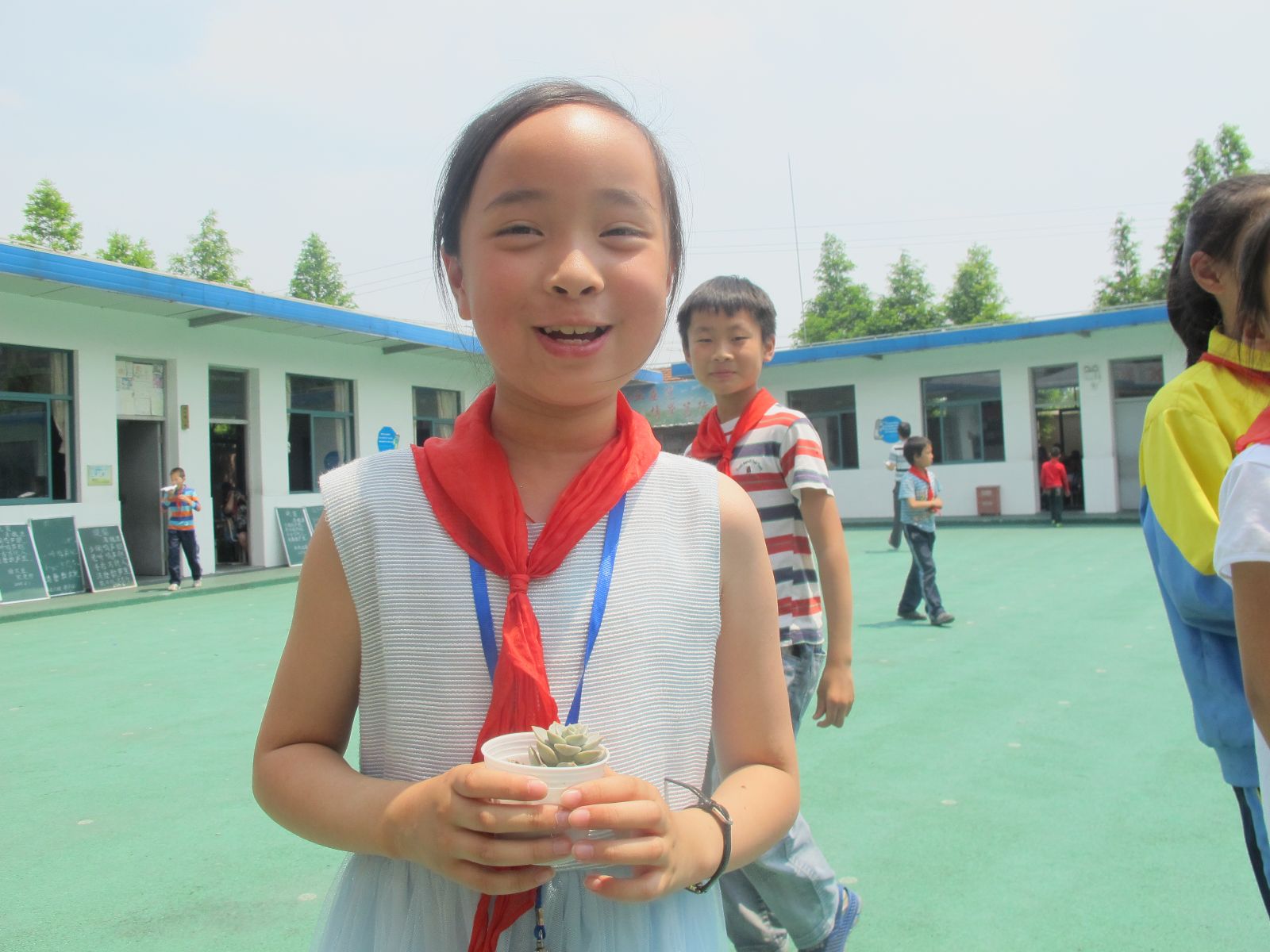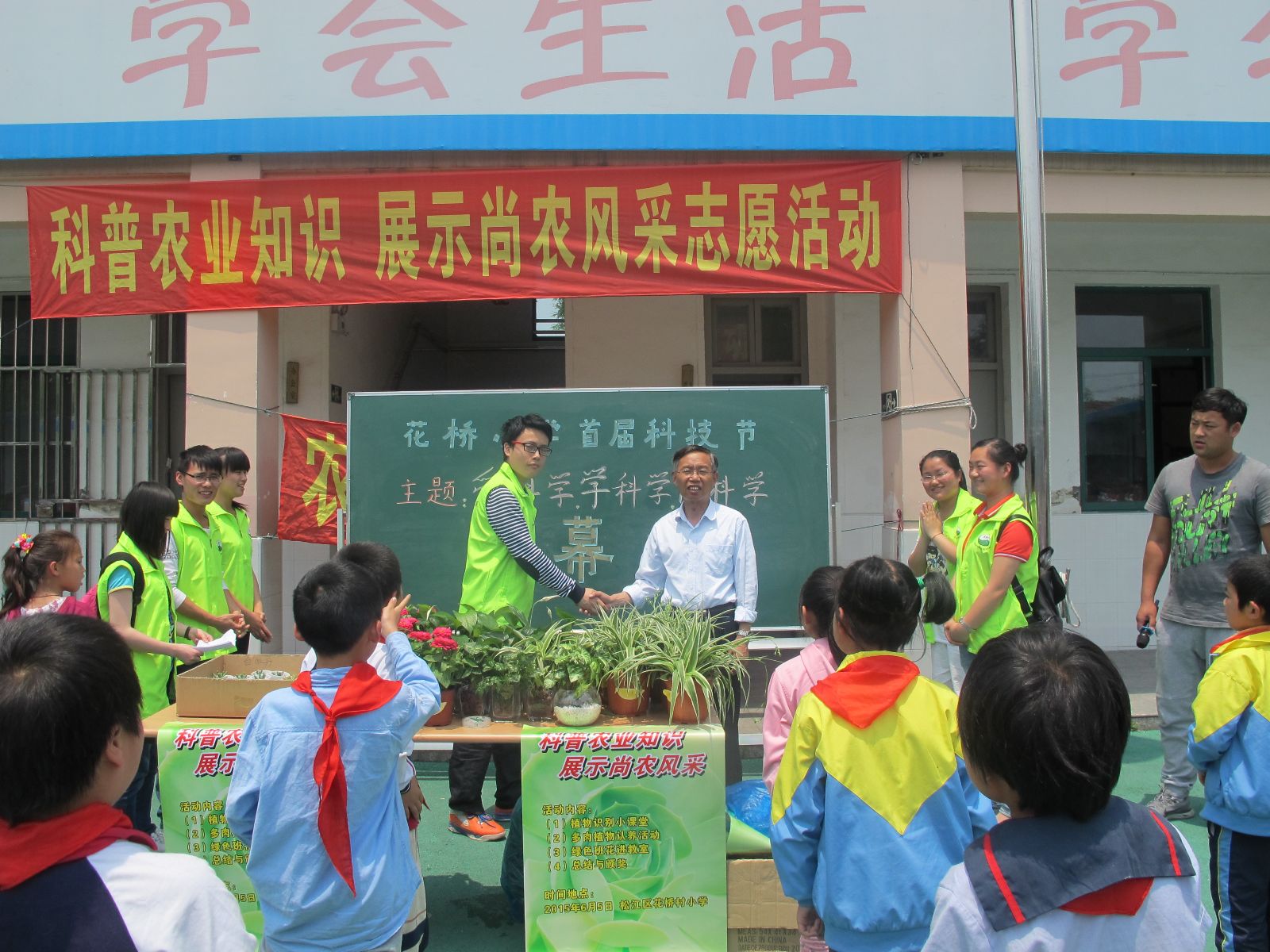 本次活动由“植物识别会”“多肉认养”“赠送交接‘班花’”“总结与颁奖”四个部分组成。活动伊始,由花桥村小学施校长发言,他希望小朋友可以在学习书本知识同时,掌握简单的农业小知识。随后活动分2个场地进行。教室里志愿者们组织“植物识别小课堂”,为小朋友讲解多肉植物知识。在志愿者们细心解说下,小朋友们认识了多种盆栽小植物。室外,志愿者们组织“多肉植物认养”,小朋友们通过表演,抢答等形式获取盆栽,小朋友们多才多艺,毫不怯场,志愿者们热情耐心,操场上一片欢声笑语。在赠送“班花”时,各班级老师纷纷表达了他们的诚挚谢意。