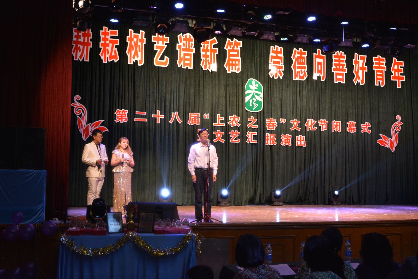 6月4日,学院第二十八届“上农之春”文化节闭幕式暨文艺汇报演出在大礼堂举行。党委副书记、副院长俞锦禄,副院长谢锦平,市农校副校长王军亮出席闭幕式。本届文化节组委会成员,相关职能部门负责人,获奖人员,师生代表及法国圣日耳曼农业学校交流学生等参加了闭幕式。