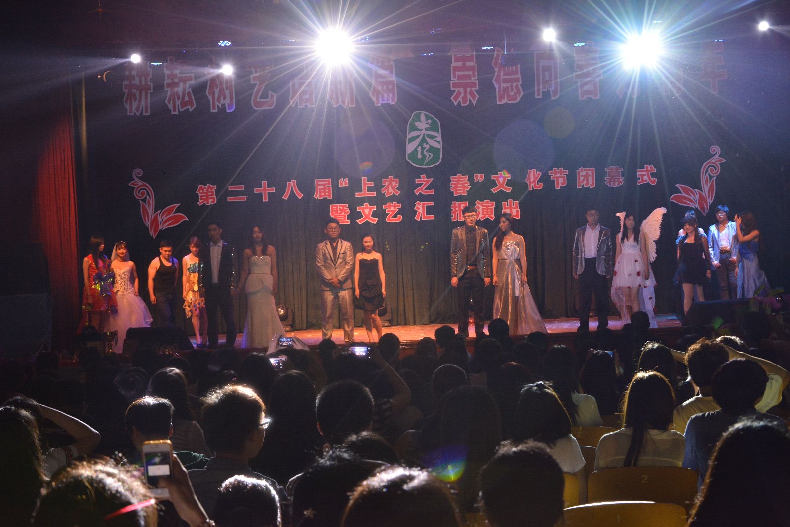 闭幕式上,舞龙表演《中国龙》、情景朗诵《致青春》、国术表演《中国功夫》、民族舞《希望的田野》、环保服饰走秀表演和小品《落叶归根》等形式多样的文艺节目交映生辉,展现了上农学子在学院校园文化中锻炼成长、全面发展、追逐梦想的青春风采。文艺演出最后在大合唱《尚农之歌》的精彩表演中落下帷幕。