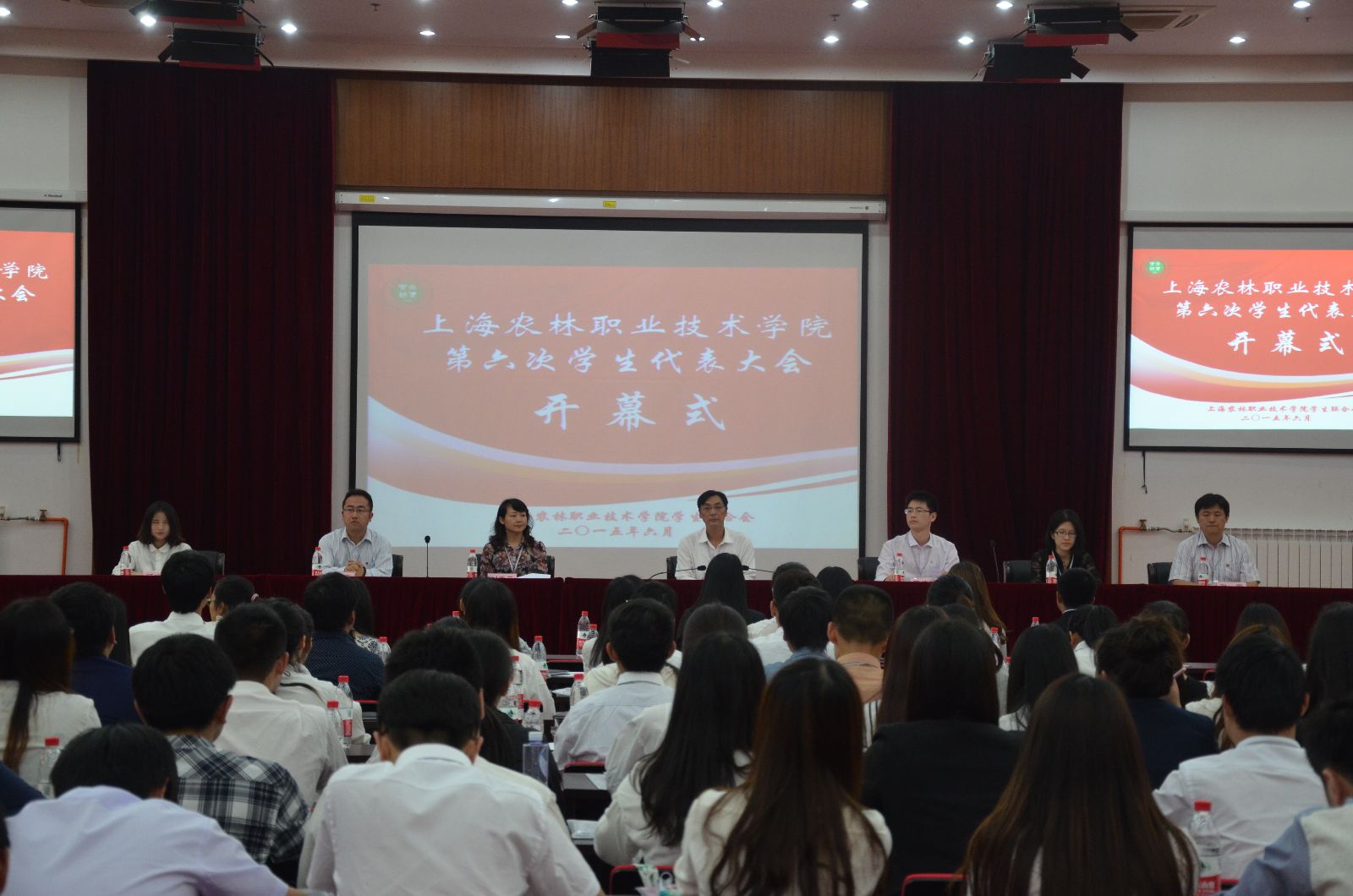 6月5日,上海农林职业技术学院第六次学生代表大会在雄壮激昂的国歌声中隆重开幕,党委副书记、副院长俞锦禄出席,上海市学生联合会驻会主席罗清尹,党委学工处处长、学生处处长刘秀云,团委书记许昊,各系团总支书记,全体代表及兄弟院校学生会负责人等200余人参加了开幕式。