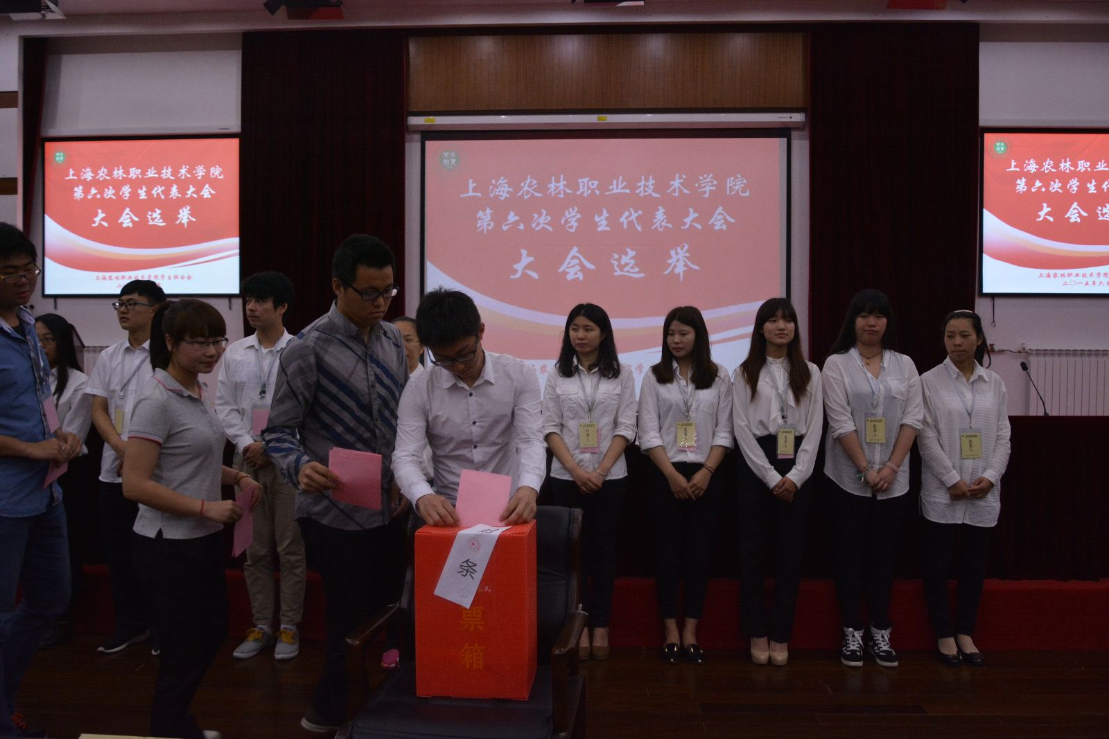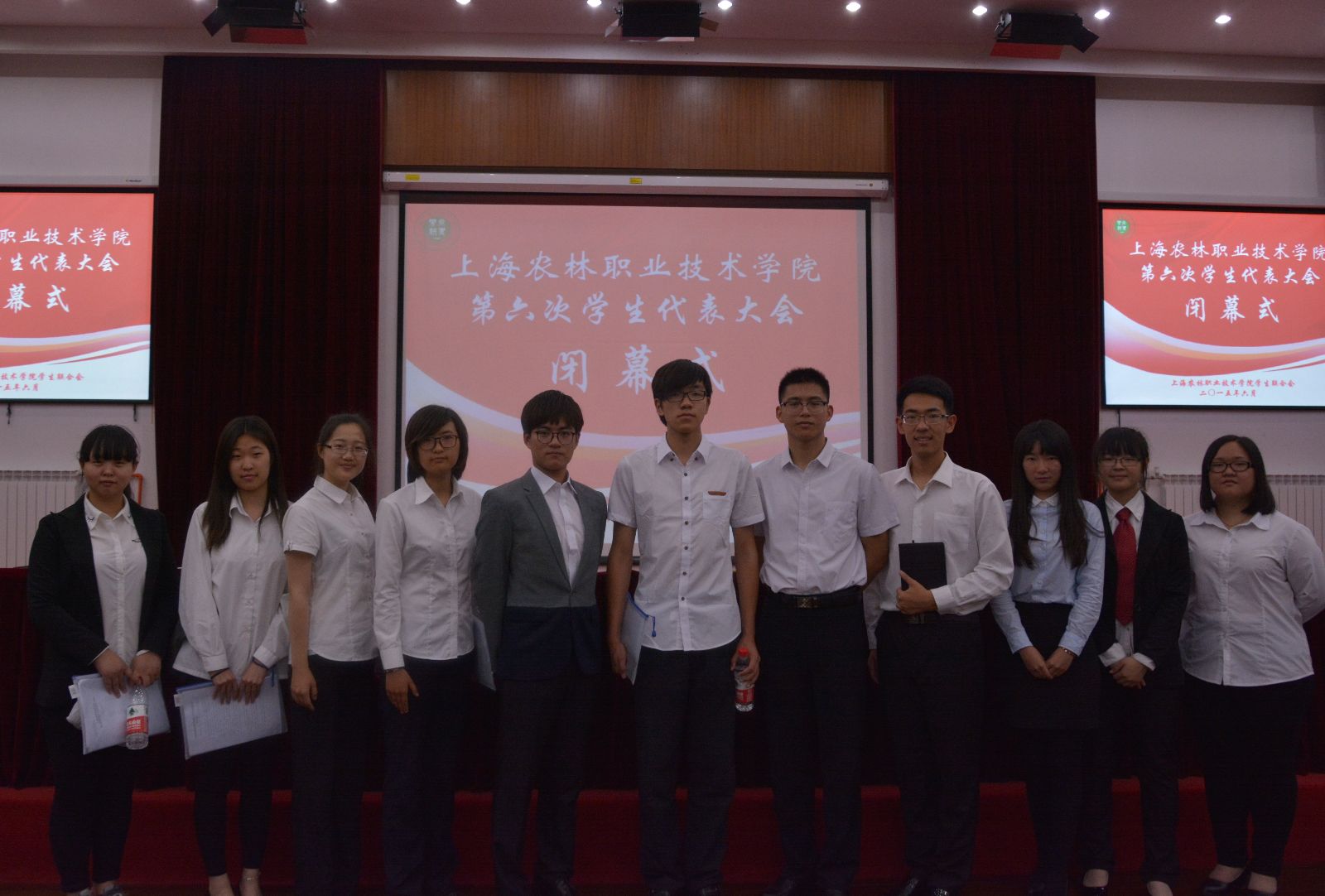 在庄严的《国际歌》歌声中,上海农林职业技术学院第六次学生代表大会在圆满完成各项议程后胜利闭幕!