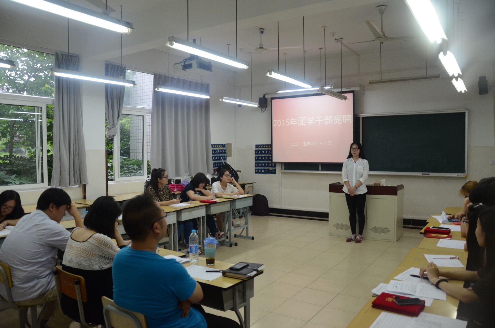 6月17日—18日,院团委在第一教学楼开展2015年团学干部岗位竞聘工作,团委书记许昊、团委老师、团学各部门负责同学等参与了此次竞聘工作。