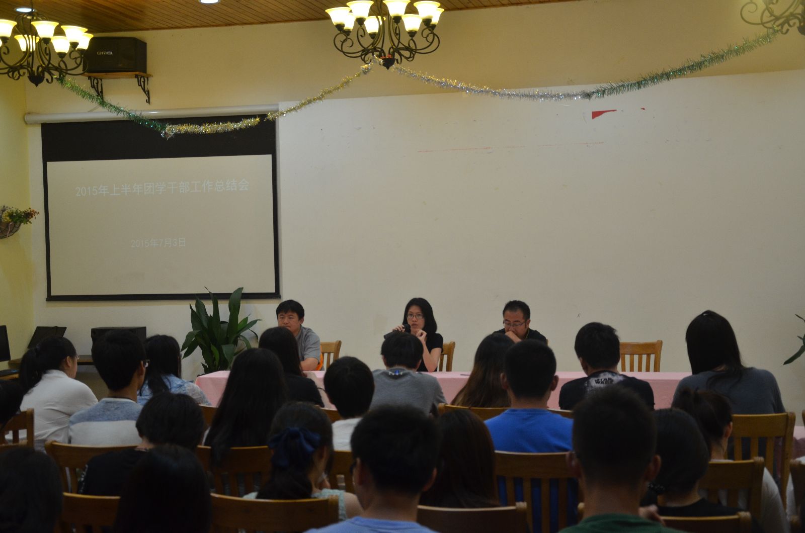 在召开团学干部工作总结会上,各系团学干部们表达了对团学工作的感情,交流了两年来在工作职能、校园文化活动、社会实践、团队建设等亮点和特色工作。团委书记许昊希望同学们在以后的工作中要踏实勤恳,做有心人,要有凝聚力、领导力、协调力,使得工作有特色、有创新、有成效。