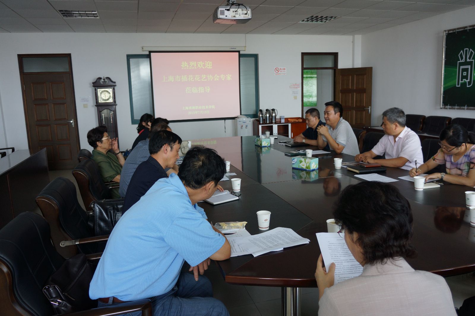 7月15日,上海市插花花艺协会会长徐文发、终身名誉会长蔡仲娟、插花大师王路昌、丁稳林和上海市插花花艺进修学校陈春妹校长一行近十人,来到学院莅临指导,专程为园艺园林系、花艺工作室的建设与发展出谋划策。副院长谢锦平、继续教育中心主任郁海根、园艺园林系主任俞平高及花艺工作室相关教师一同参加了研讨交流。