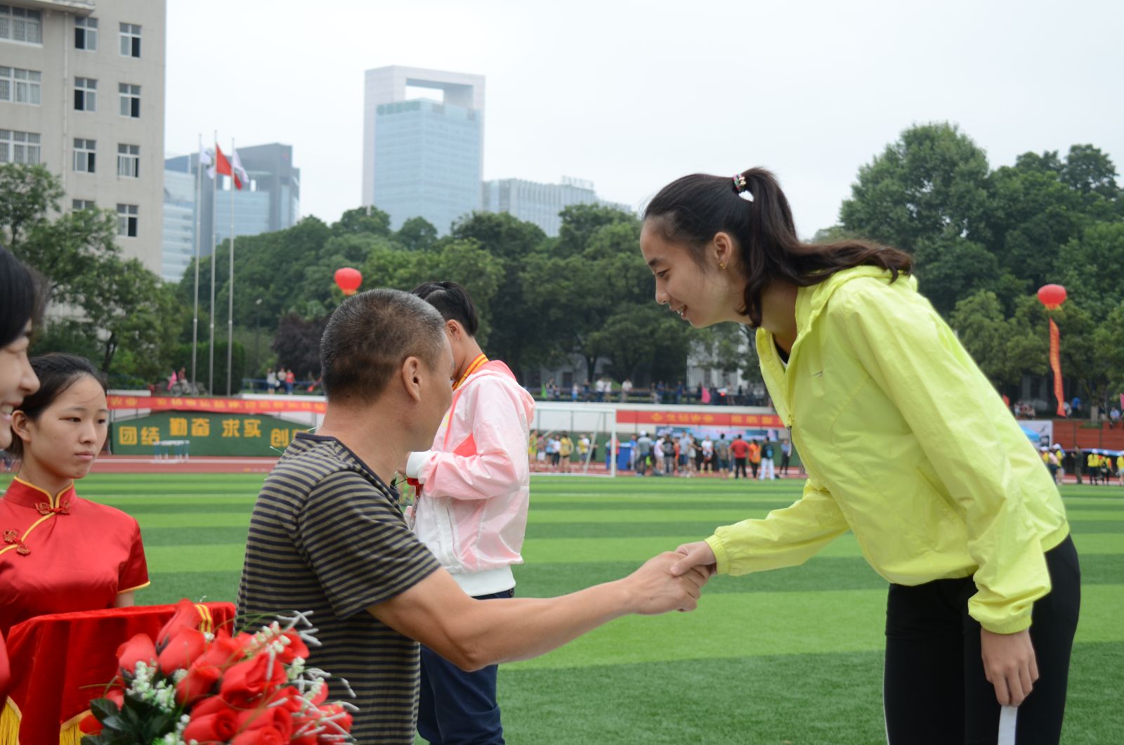 在乙组女子跳远赛场上,龚兆琪、陈路蓉两位同学以4.53米,4.45米的成绩勇夺冠、亚军。在乙组女子100米的决赛中,陆美玲同学以12‘9脱颖而出一举获得该项目的冠军,这样的成绩在本科组也没有几位,正是她们的刻苦训练才有今天如此成绩。同时龚兆琪、陆美玲两位同学还获得优秀运动员称号。