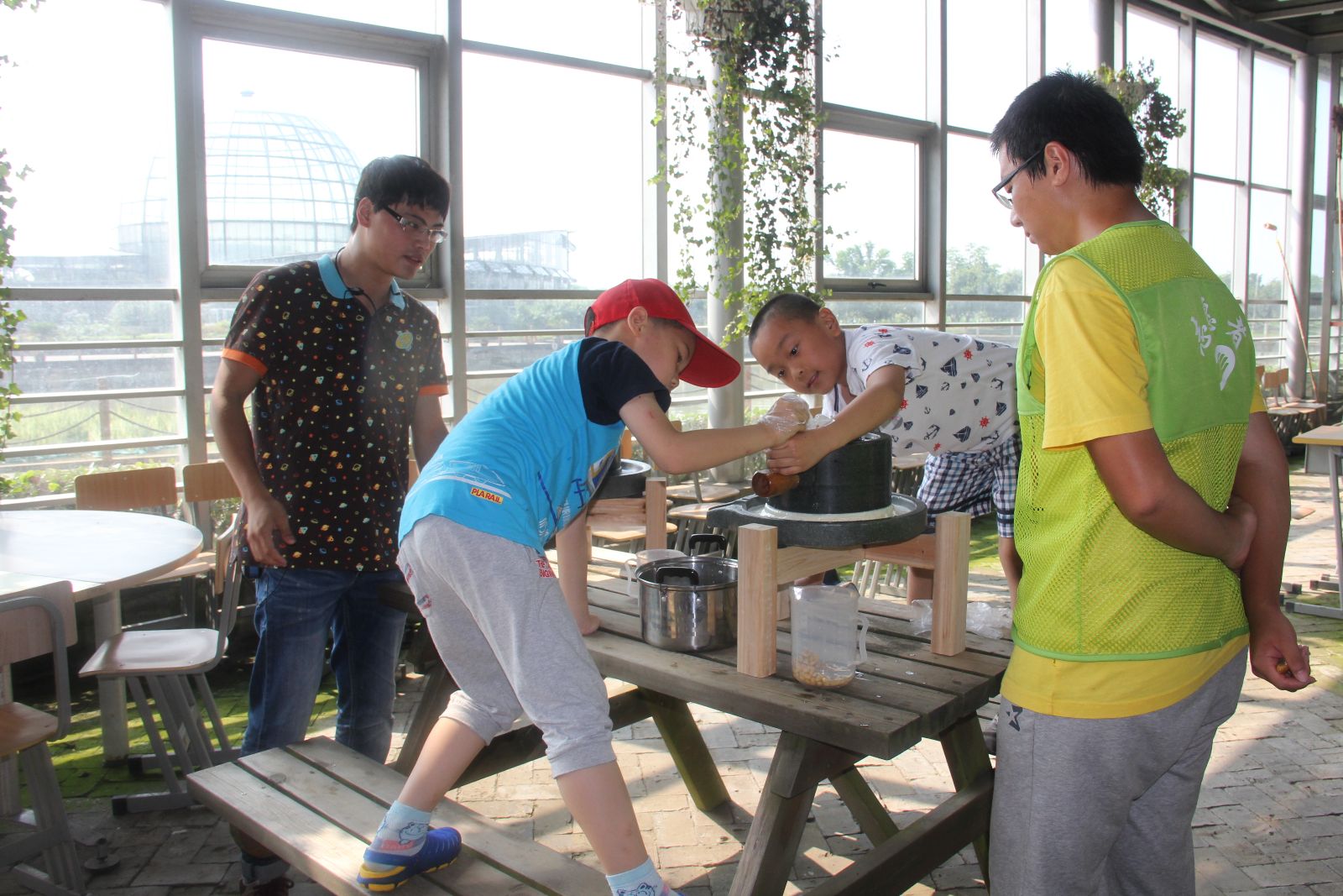 这次开放的七天中有四天气温超过38℃,大棚里更是达到了50℃。为了防止体验学生中暑,后勤保障部门为学生及家长额外提供了盐汽水和绿豆汤,特别是7月31日和8月1日两天,都是极端高温天气。为了保障学生安全,实训基地关闭了“神秘的植物世界”这一在温室进行的植物探秘体验项目,改为DIY水培植物,虽然很多报了此项目的学生与家长感到有点失望,但还是非常理解。