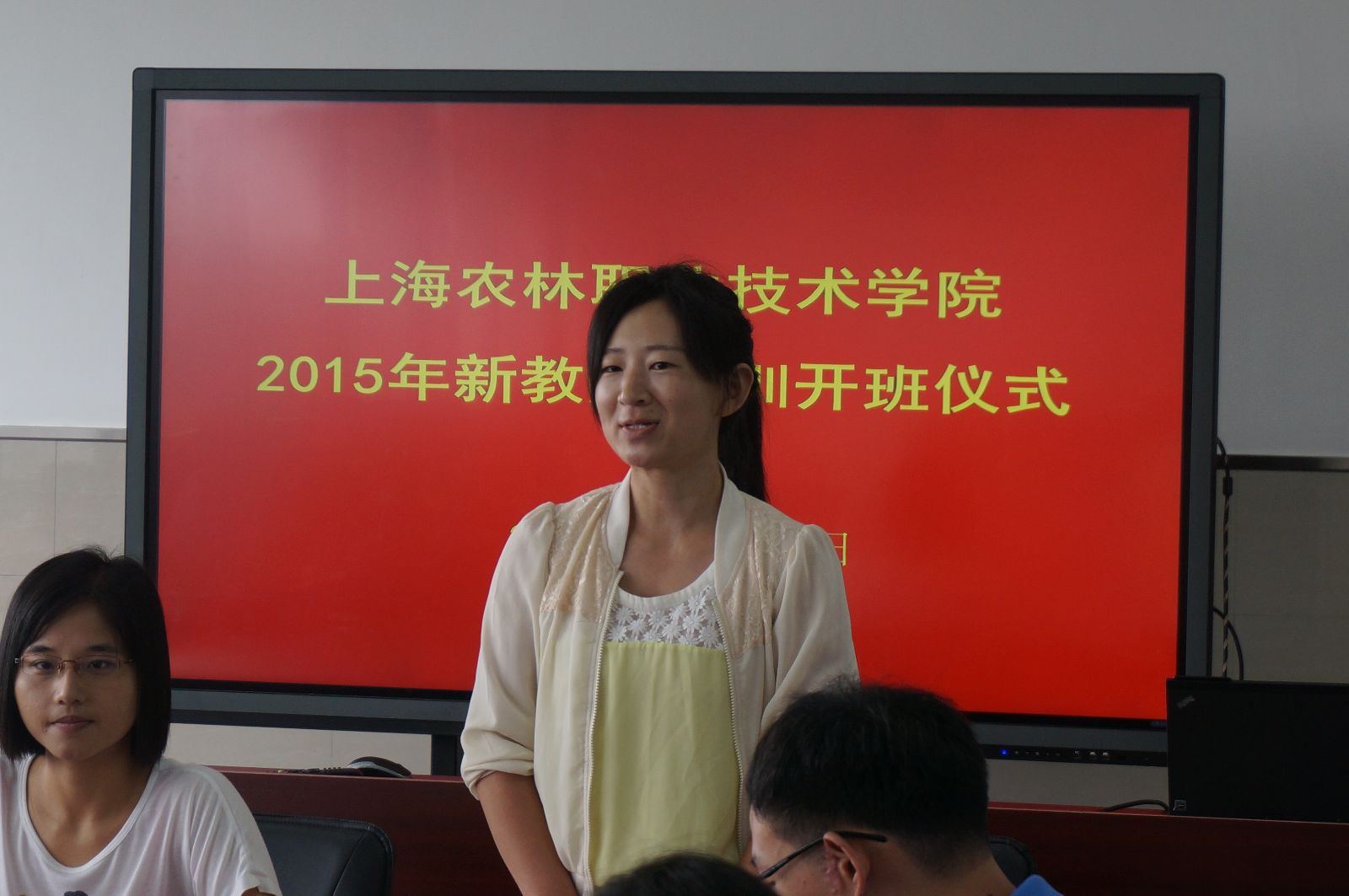 魏华首先介绍了出席培训开班仪式的与会领导及相关部门负责人,并对全体新教师加入上海农林职业技术学院表示欢迎。并对新教师提出了三点期望:第一,尽快转换角色;第二,虚心学习,快速进步;第三,努力工作,早出成绩。开班仪式上,新教师都做了自我介绍,农业生物与生态技术系徐莉老师作为新进教师代表发言。参会人员观看了学院的校区基本情况简介视频。