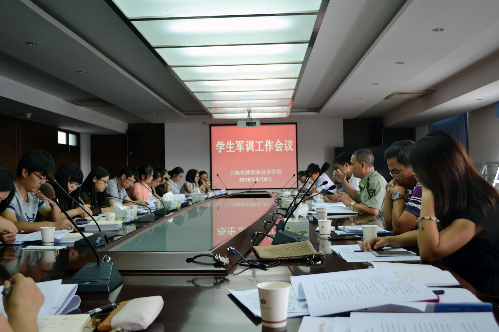 9月8日,学院2015年学生军训工作布置会在综合教学楼1101会议室召开。分管领导费国强出席并讲话。院(党)办、学生处(团委)、宣传处、教务处、后勤处、武装部以及系部学生工作负责人、辅导员参加,武装部部长郁海根主持会议。