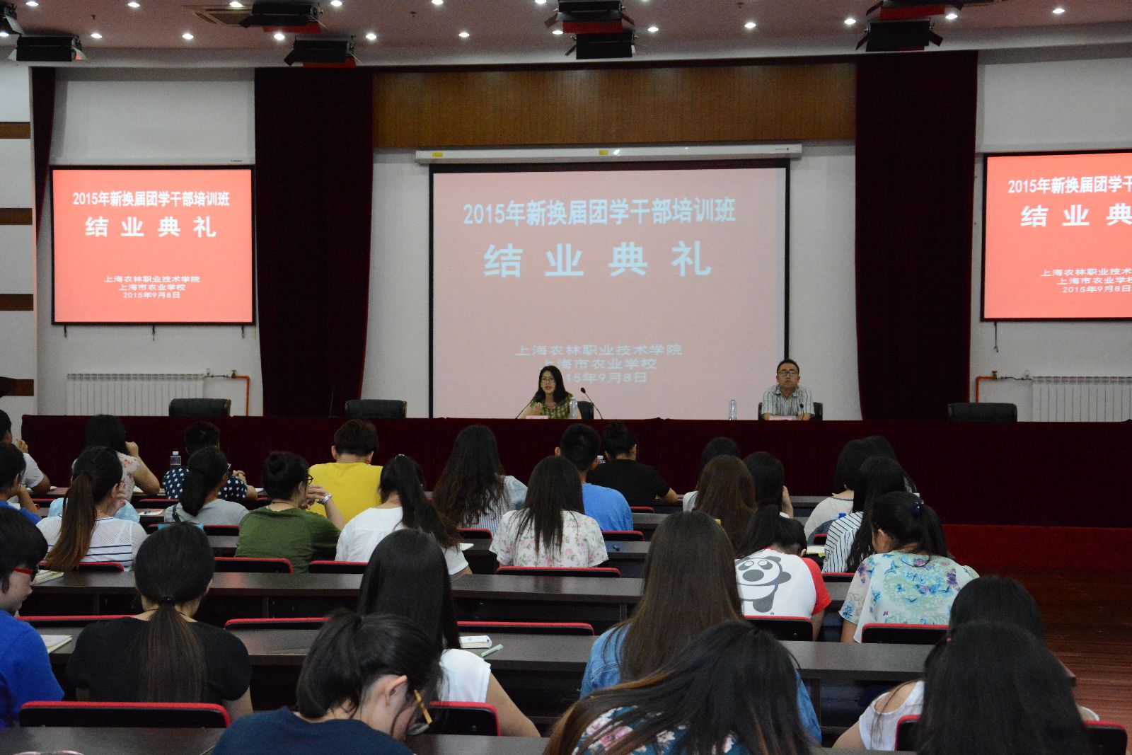 9月7日—8日,2015年新换届团学干部培训班举行,院团委学联干部、各系团总支学联干部、市农校团学干部等200余人参加了培训。