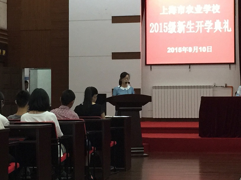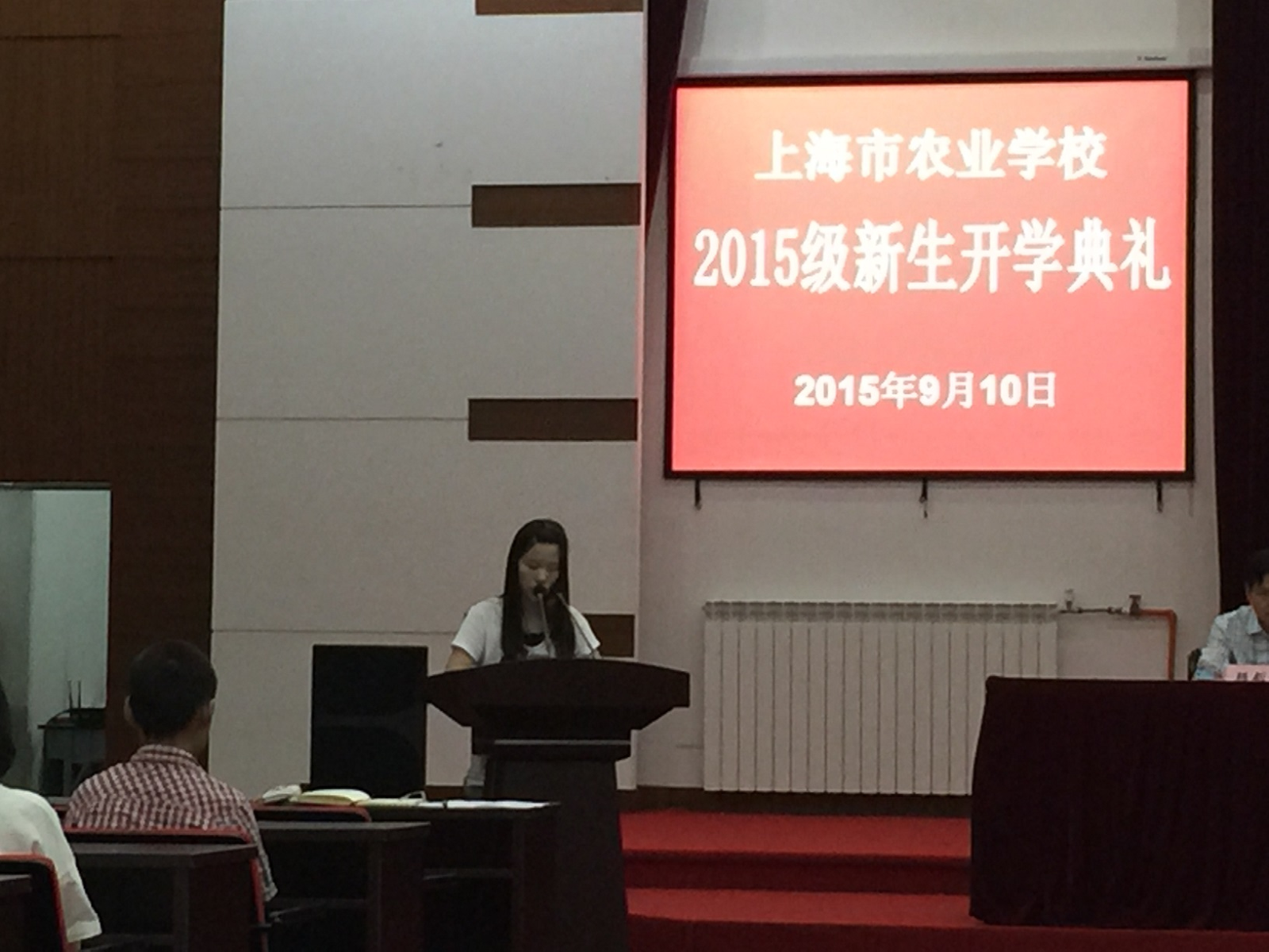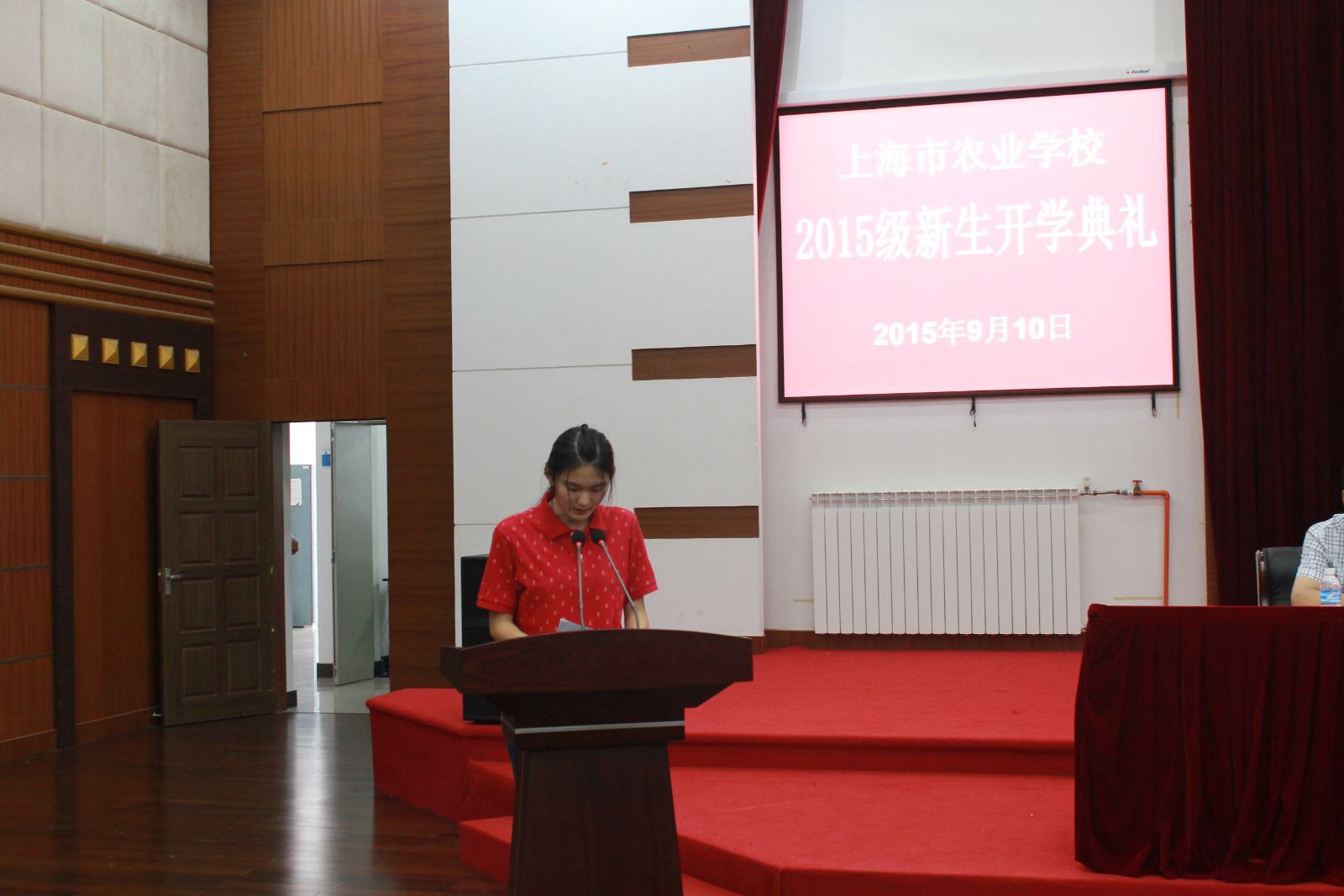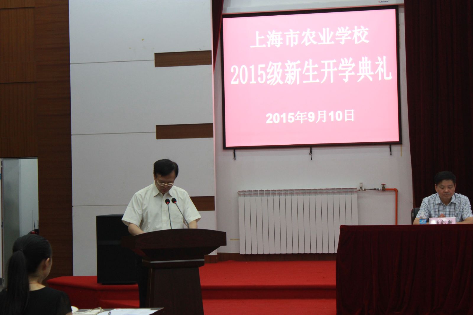 9月10日上午,上海市农业学校2015级新生开学典礼在综合教学楼205报告厅举行。校长魏华出席,学生处处长刘秀云、教务处处长王彤光、动物科学技术系主任顾剑新、园艺园林系主任俞平高,相关老师及2015级全体新生参加,副校长王军亮主持开学典礼。