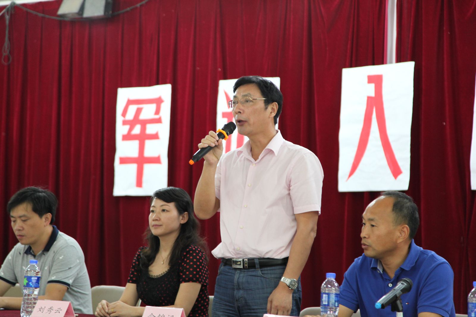 王军亮做动员讲话,他代表学校向新同学表示热烈欢迎,希望新同学在军训中要尊重教官,虚心向军人学习,并把所学到的优良品德和作风贯穿到今后的学习和生活中;要严格遵守军训纪律,服从命令,一切行动听指挥。通过军训能够形成良好的学习生活习惯、严明的组织纪律和坚定的意志品质,以饱满的热情投入到紧张的学习生活中。