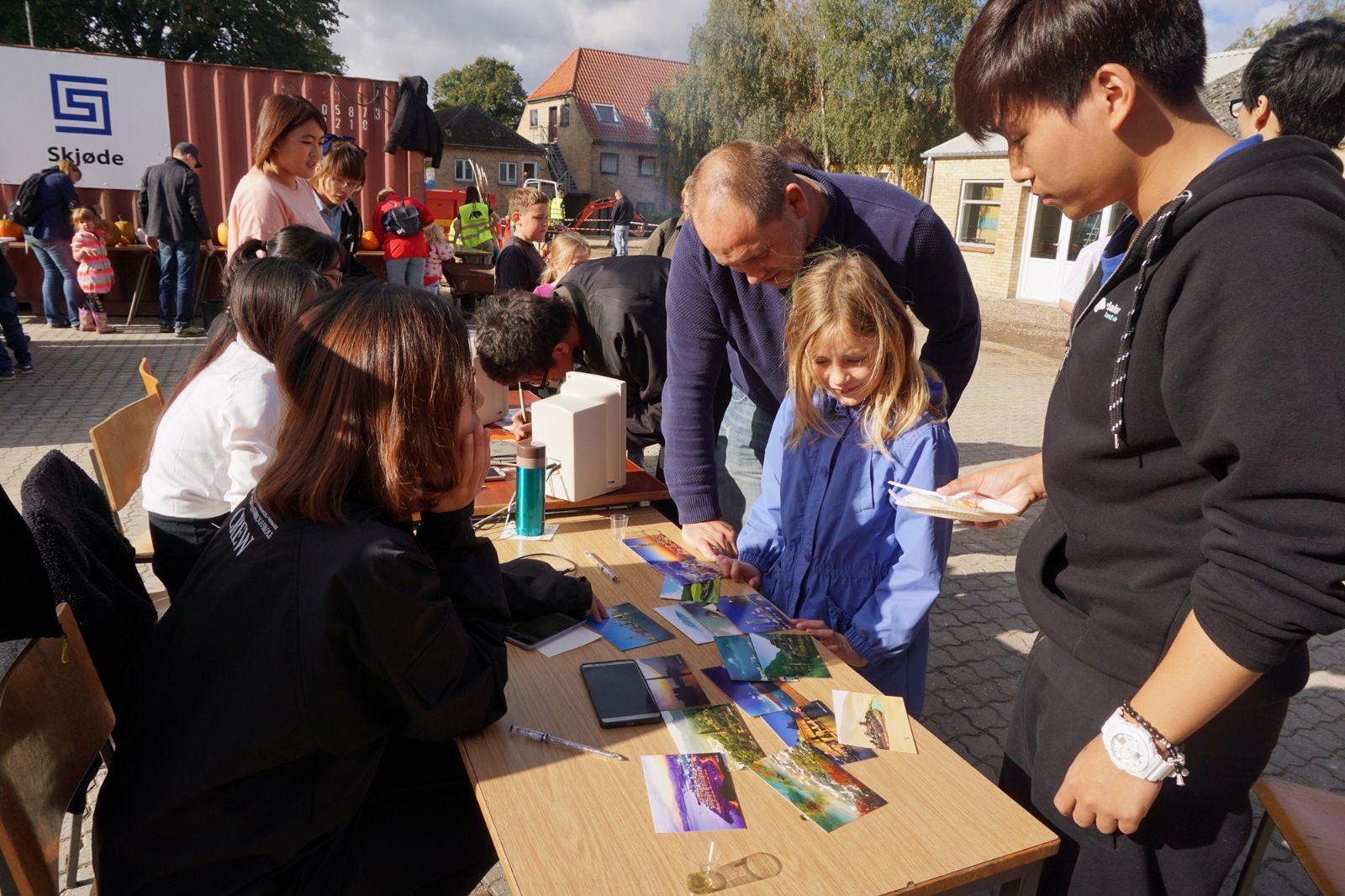 9月27日,正值丹麦农经学院一年一度校园开放日,大批市民陆续来校参观。我院交流师生为市民现场制作番茄炒蛋、可乐鸡翅、青椒牛肉丝、葱油饼等美食,表演歌舞《小苹果》,书写中文姓名,给他们带来富有中国特色中国结、瓷制娃娃、中国城市明信片等小礼物,增进了双方文化交流,赢得丹麦农经学院教师的赞赏。