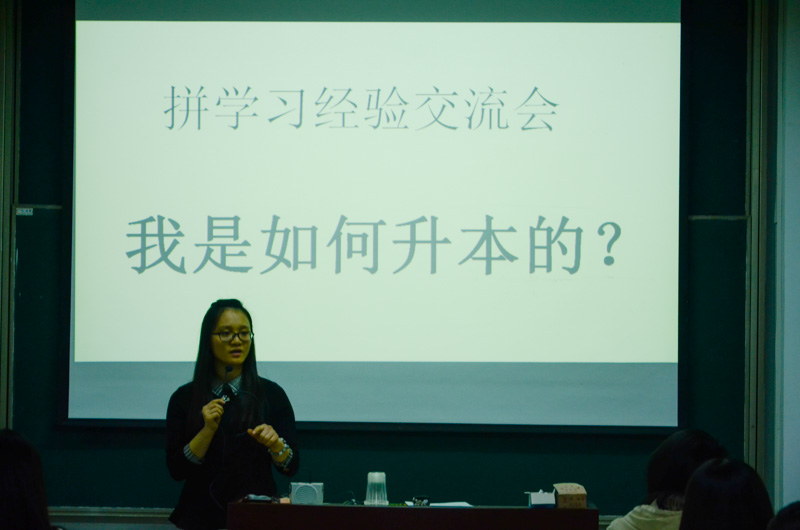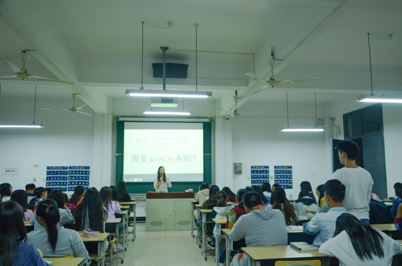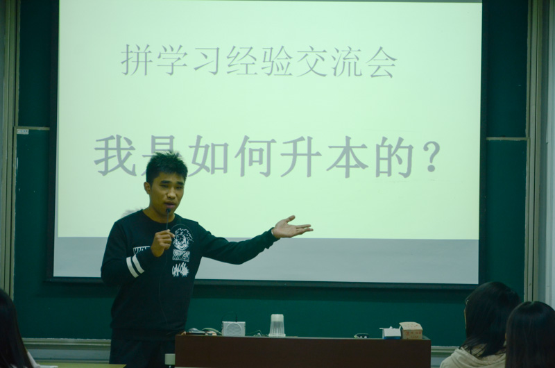 10月12日晚,农经系邀请杨婵娟等四位专升本同学为150余名农经、商管专业新生作了“拼学习”经验交流会,该系副主任路以兴主持交流会。