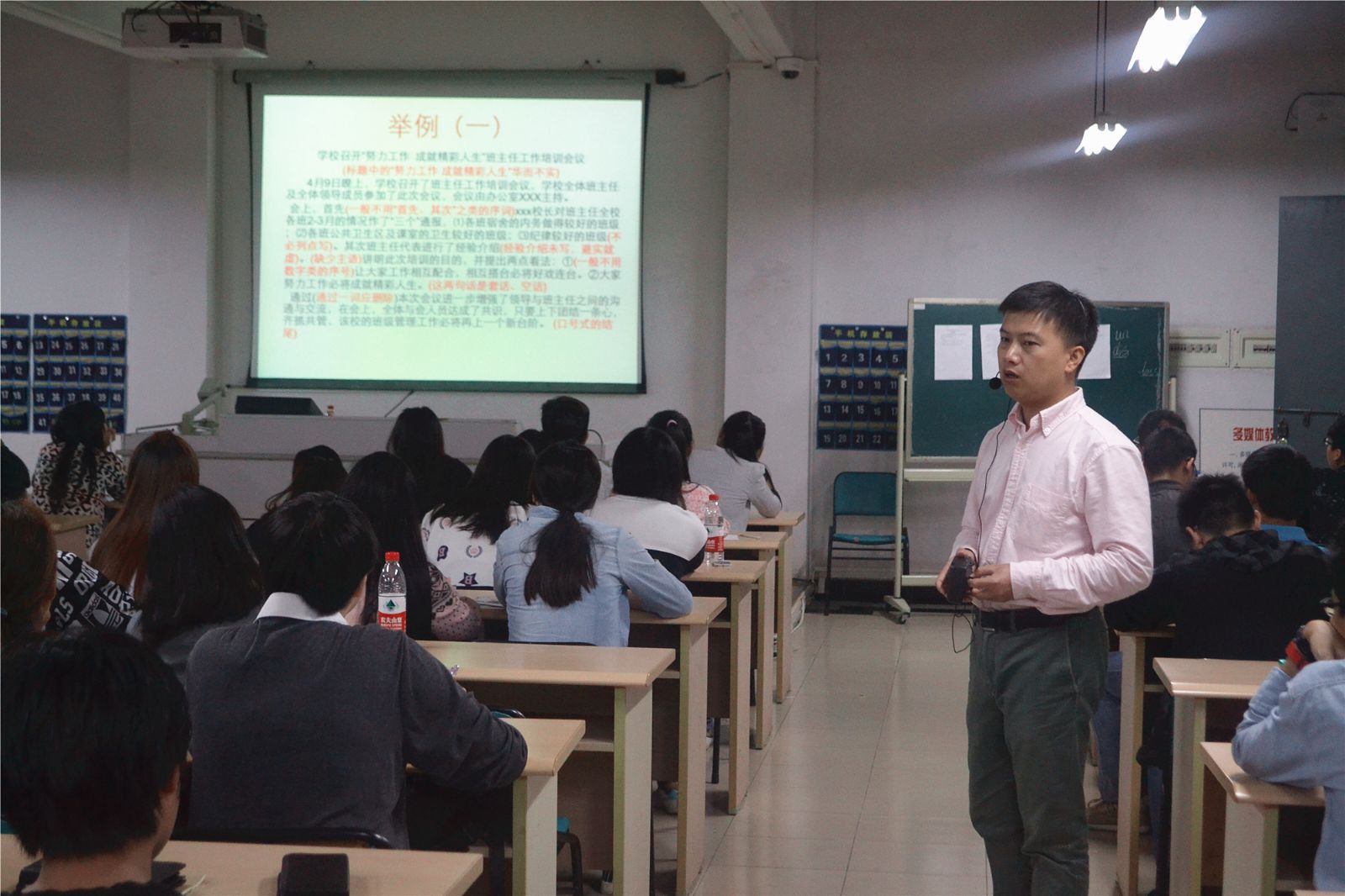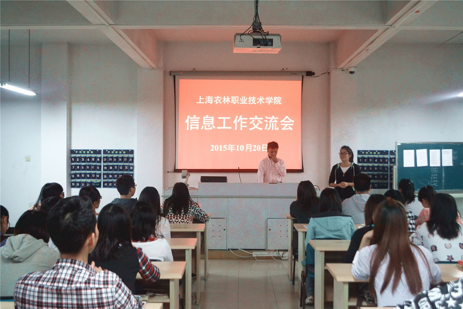 10月20日晚,由动物科学技术系组织的新闻信息写作培训在一教213举行。学院党办、院办副主任费明主讲,动科系2015届团学干部参加了此次培训。